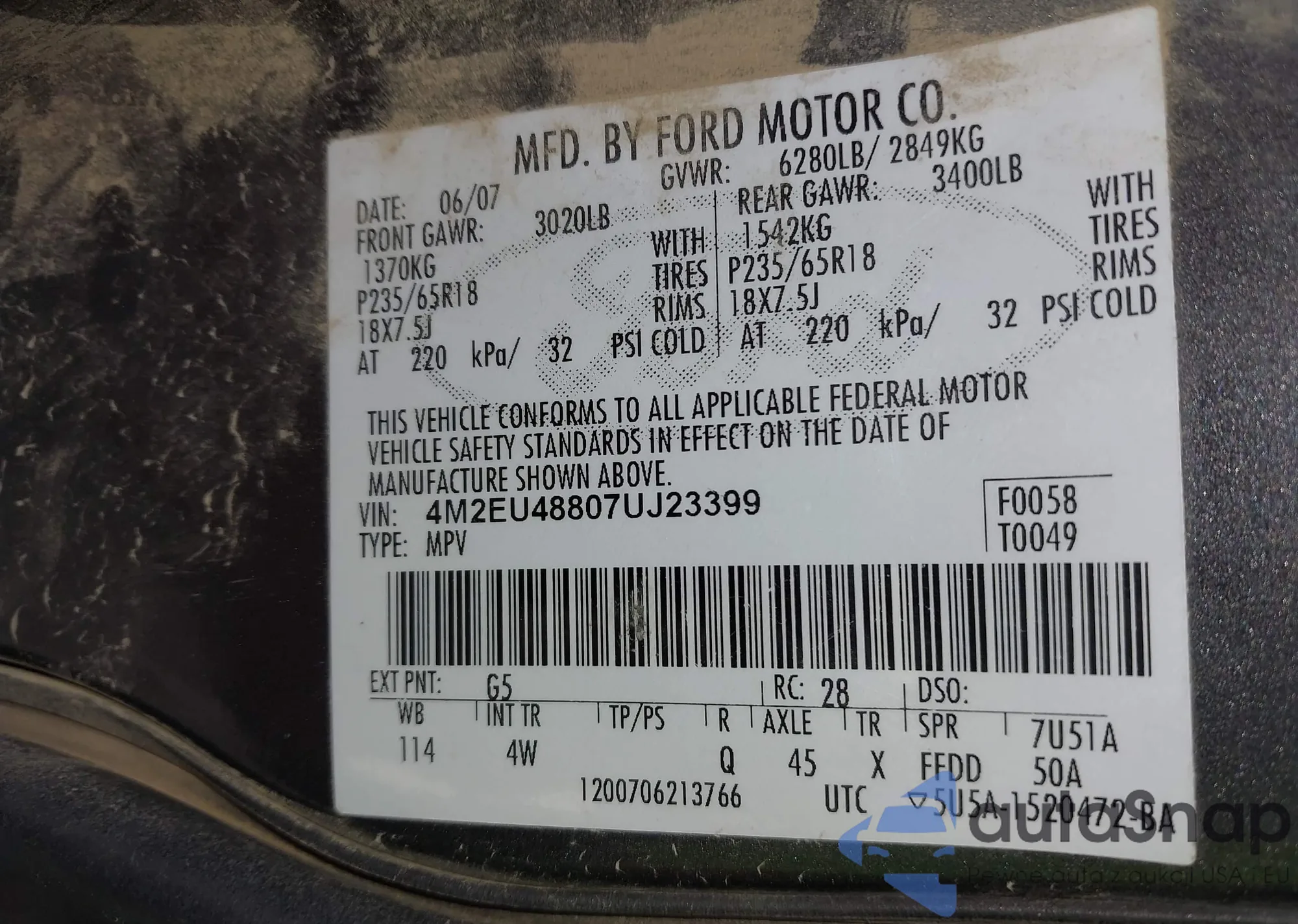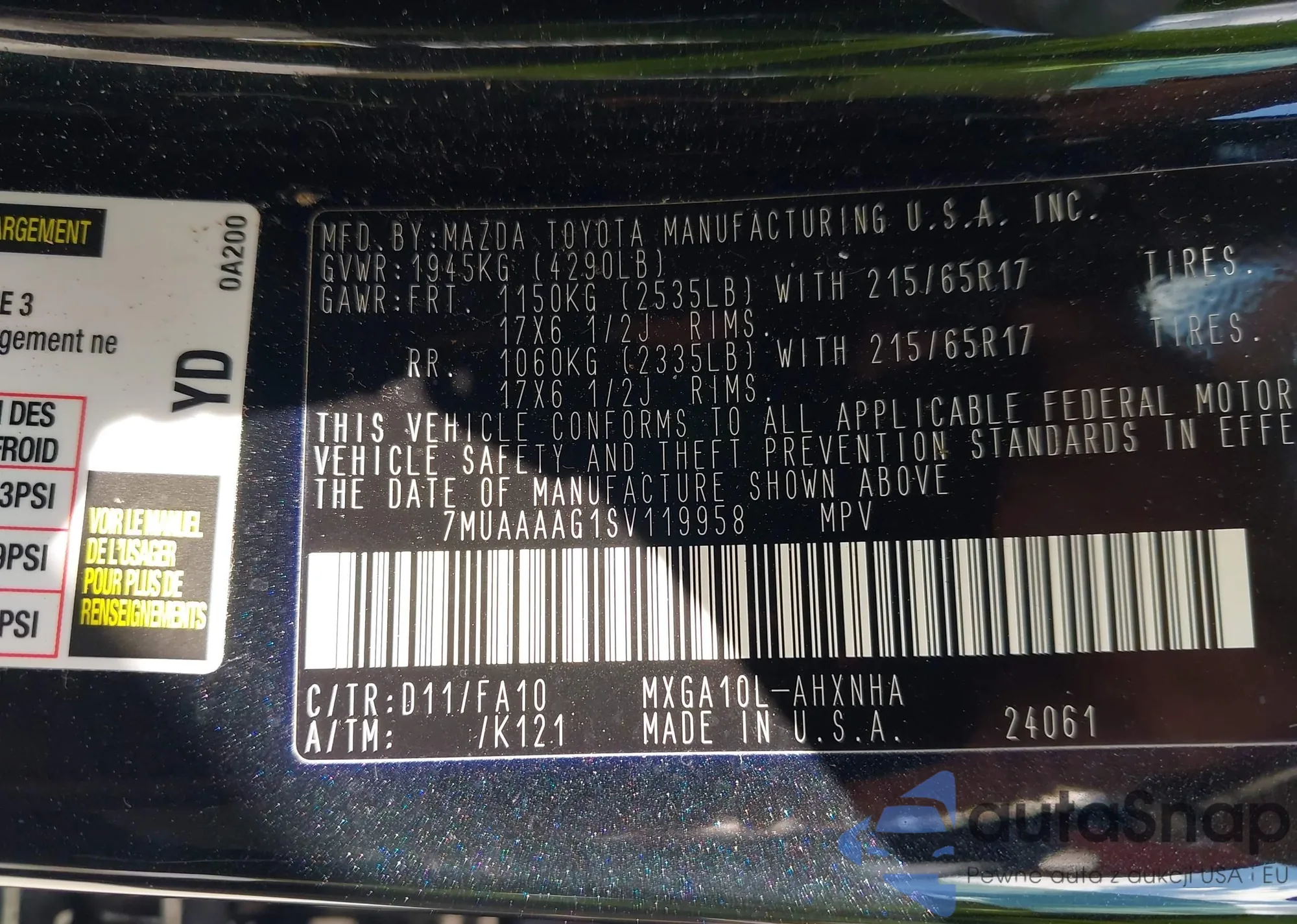 • VIN 7MUAAAAG1SV119958
