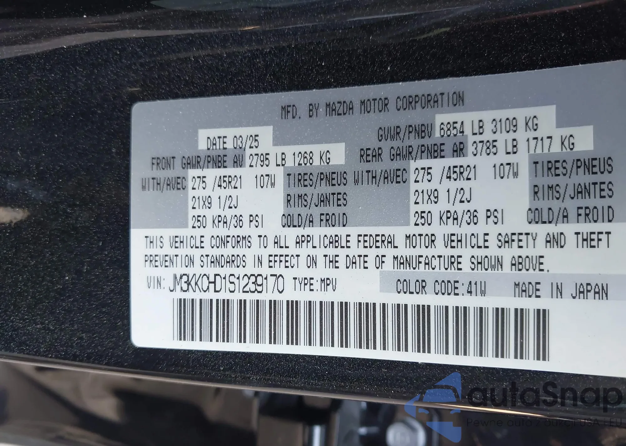 LOT: 43496038 VIN: JM3KKCHD1S1239170