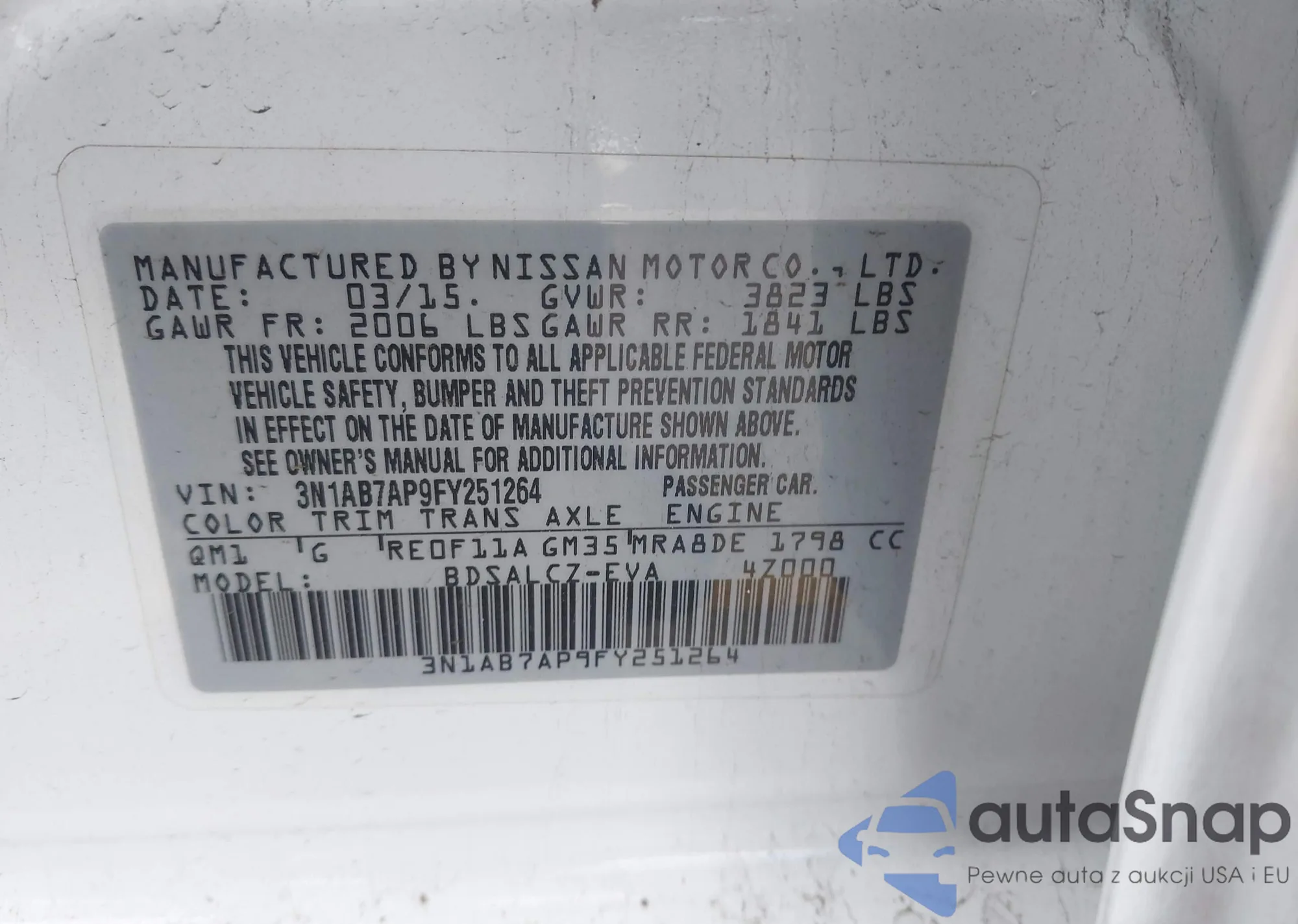 • VIN 3N1AB7AP9FY251264