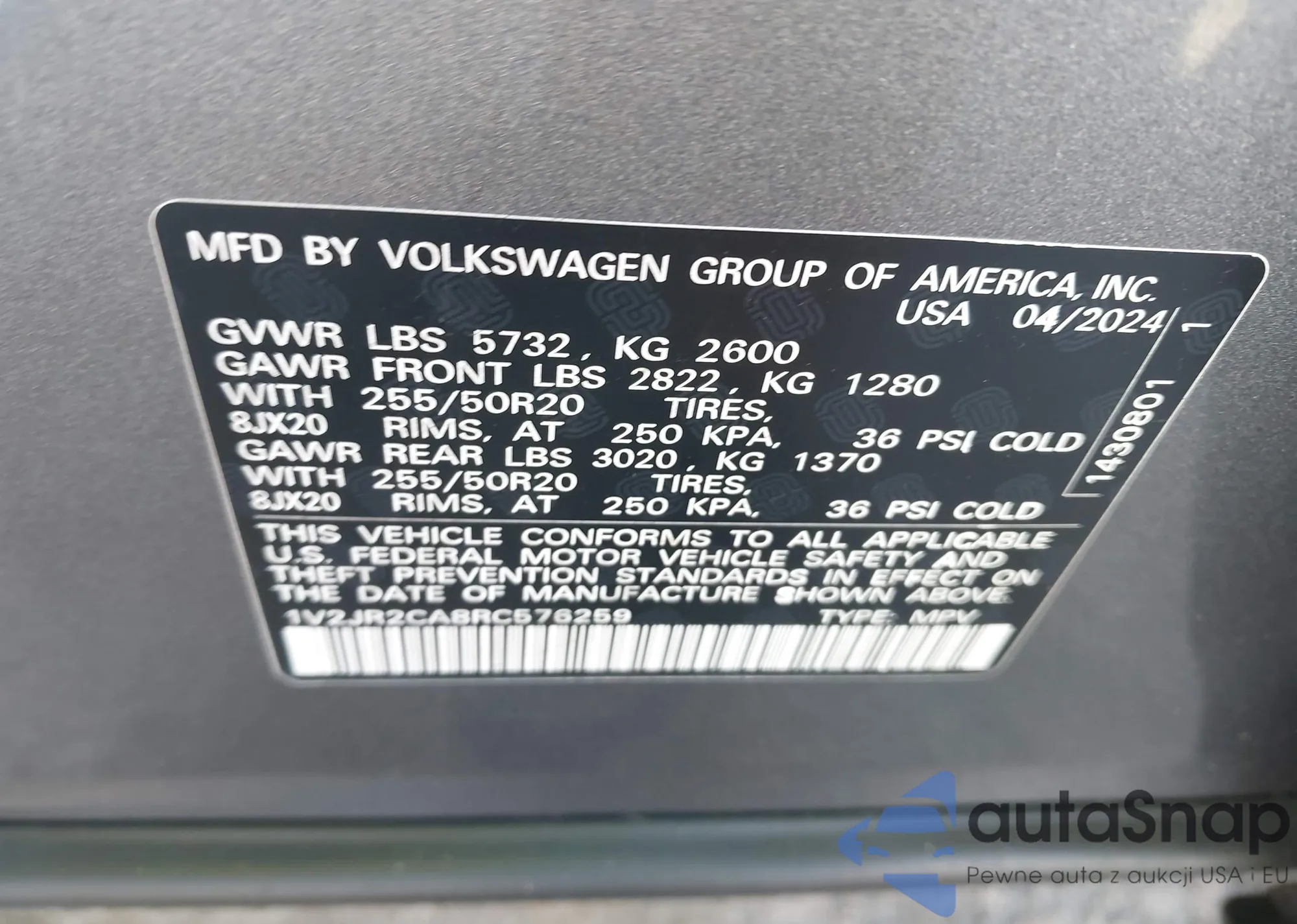 • VIN 1V2JR2CA8RC576259