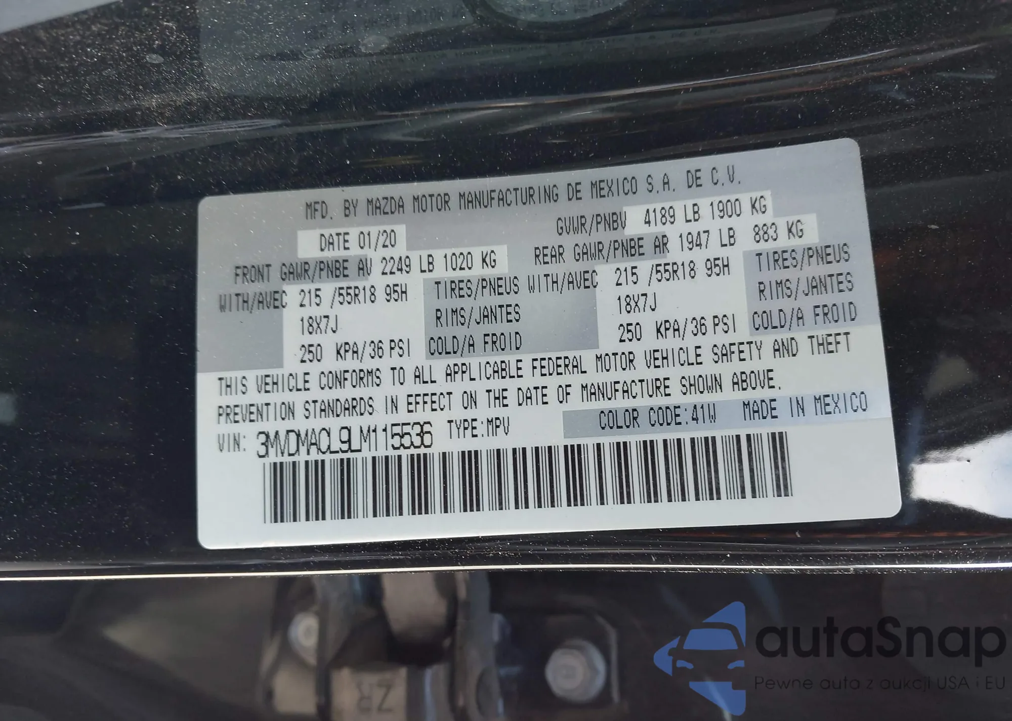 • VIN 3MVDMACL9LM115536