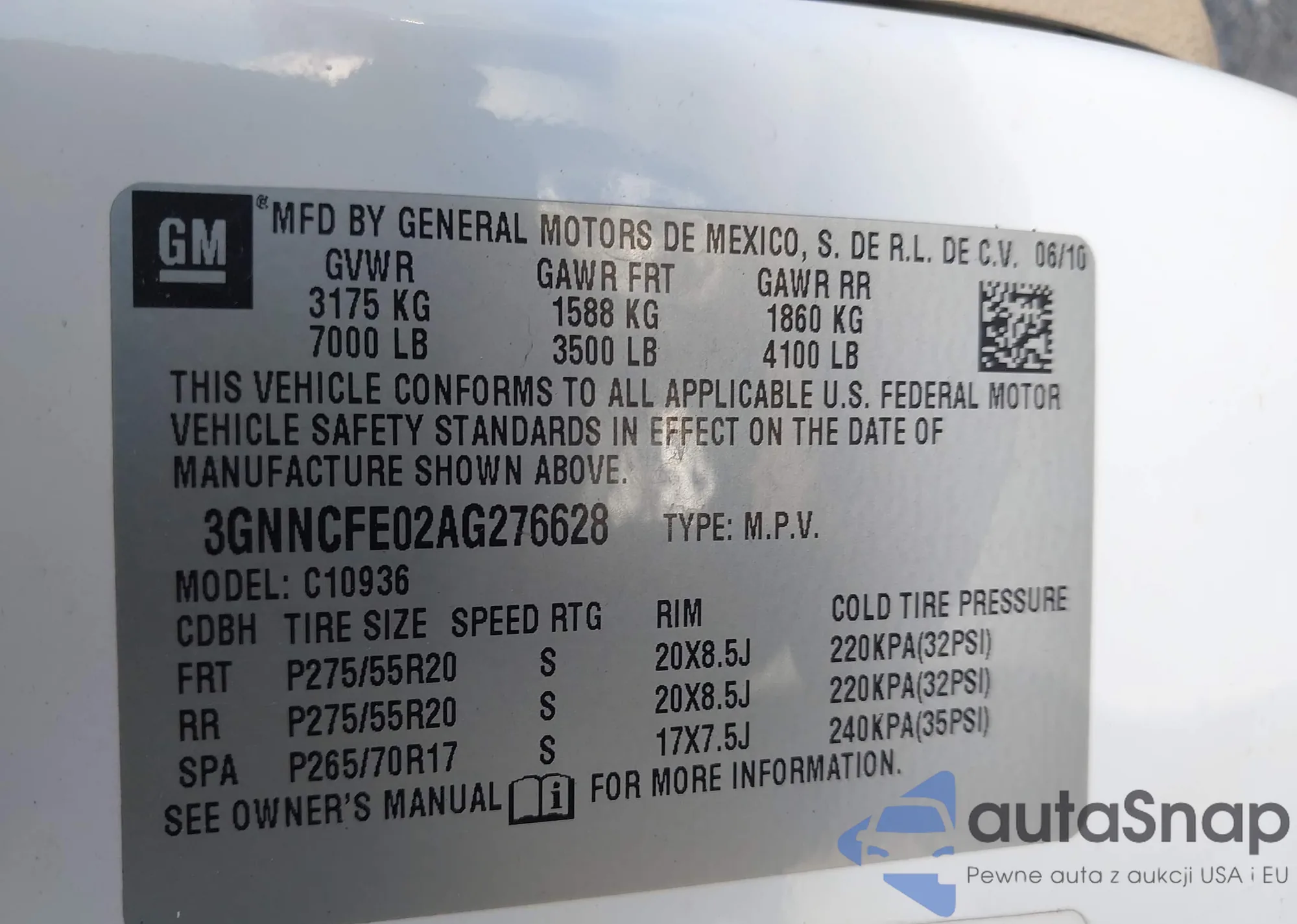 • VIN 3GNNCFE02AG276628