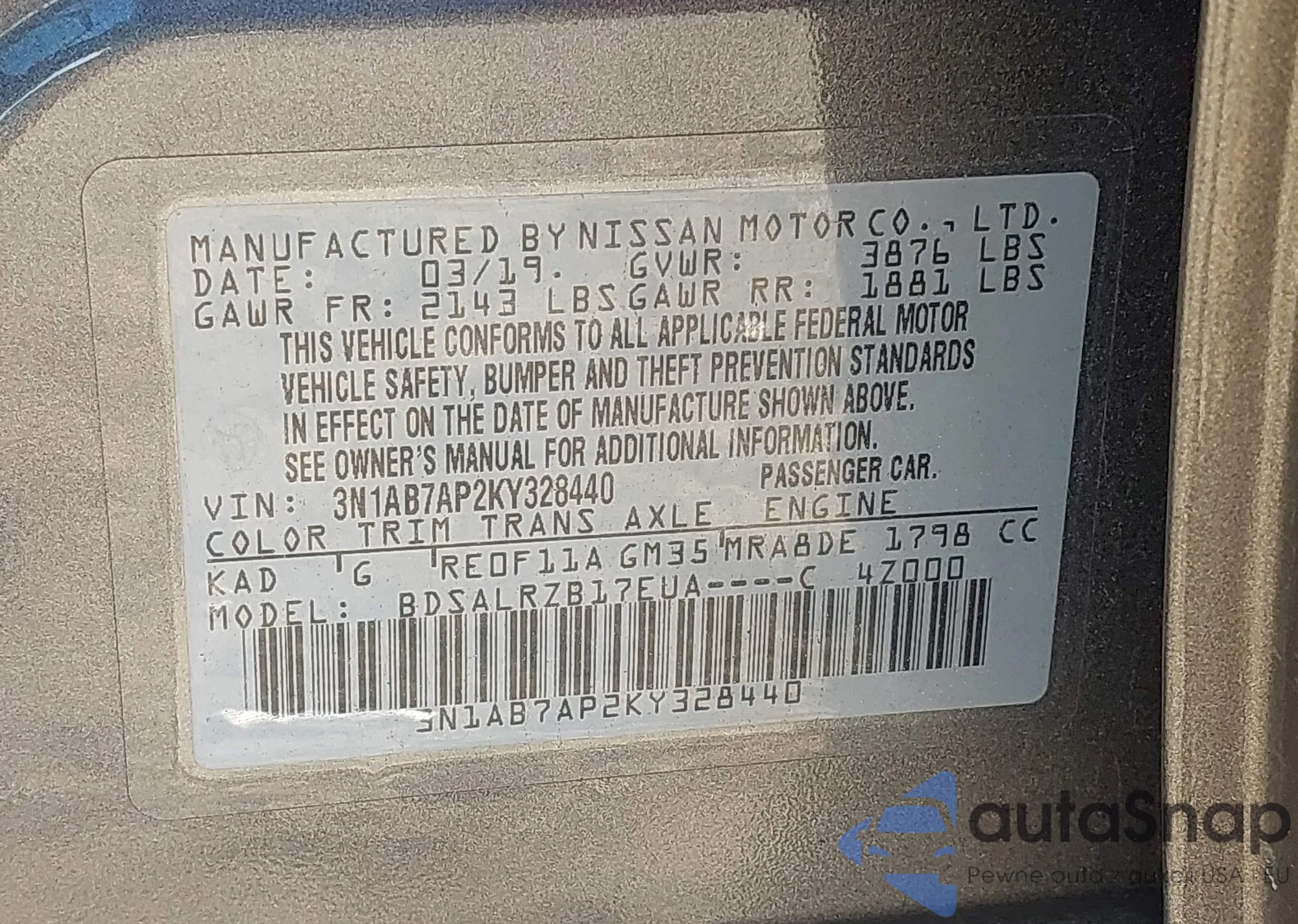 • VIN 3N1AB7AP2KY328440