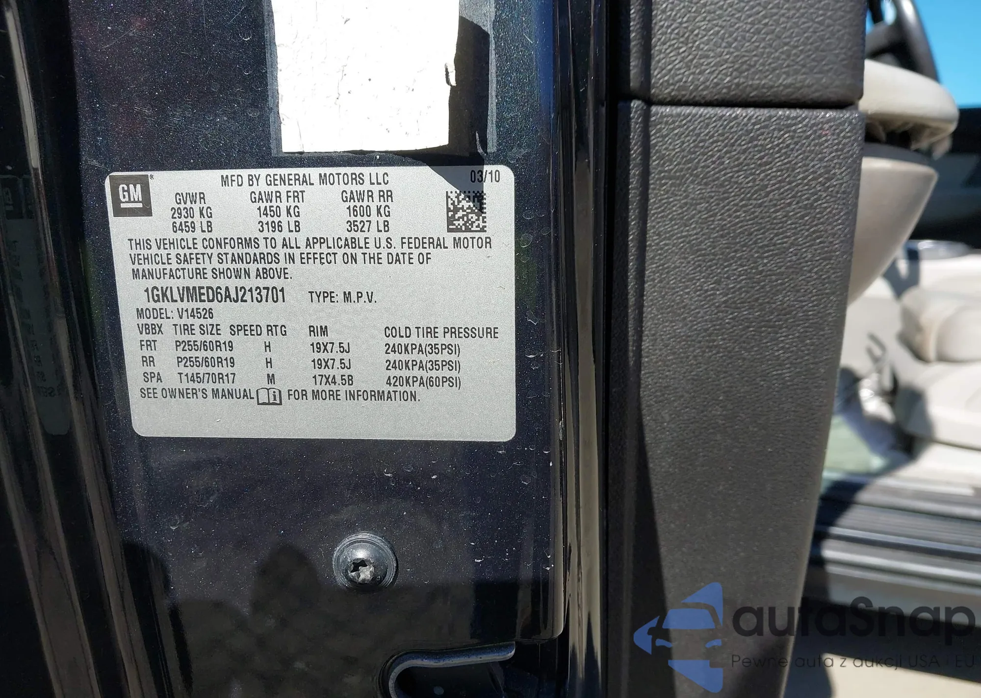 • VIN 1GKLVMED6AJ213701