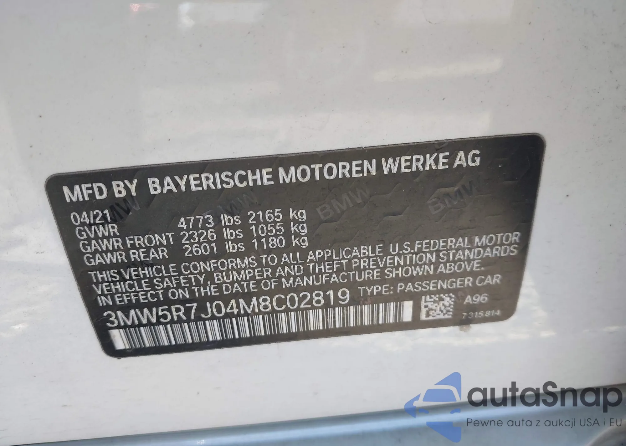 LOT: 43502376 VIN: 3MW5R7J04M8C02819