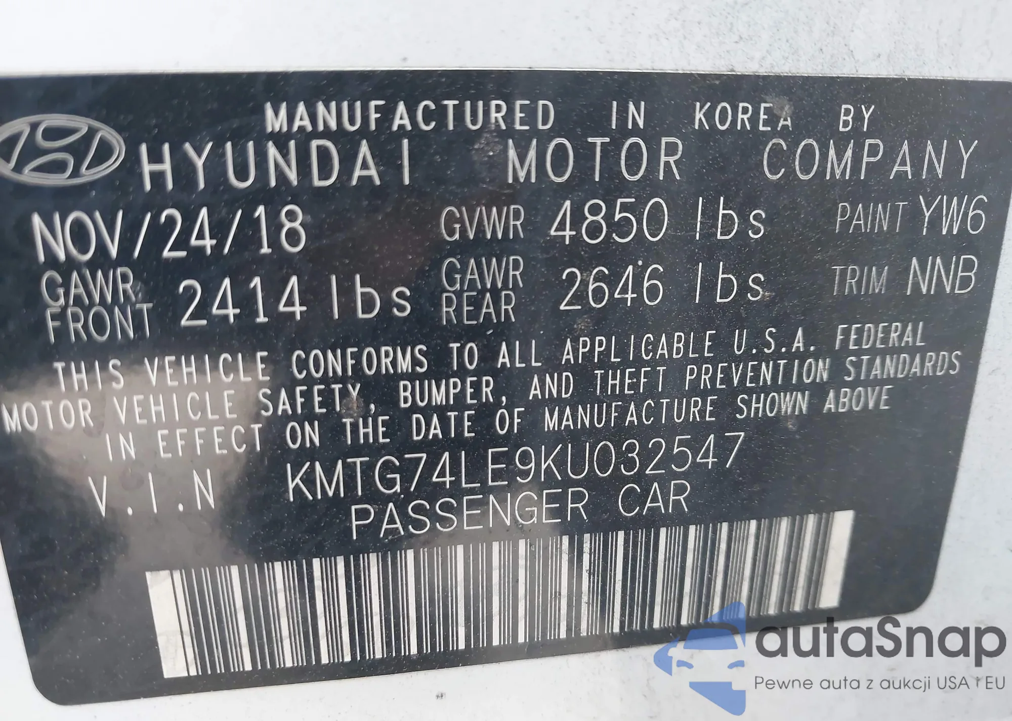 LOT: 42696385 VIN: KMHDH4AE3FU277640