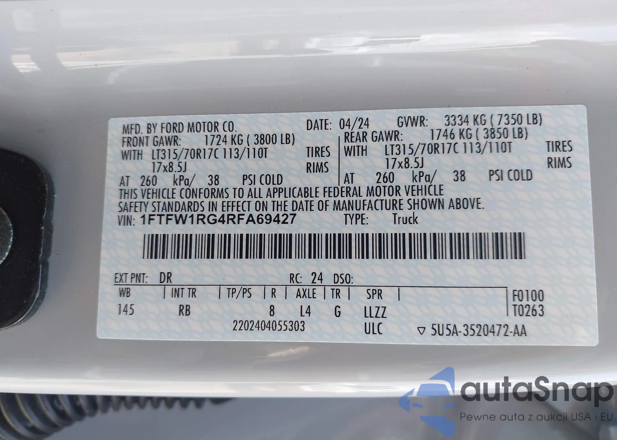 • VIN 5TFCZ5AN3HX057225
