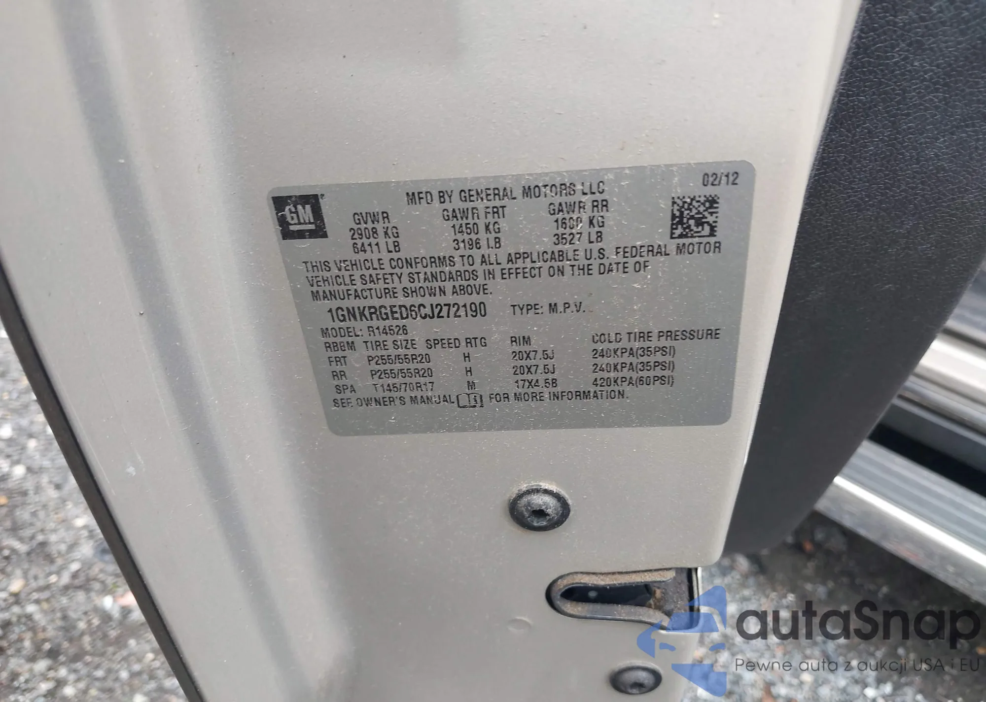 LOT: 43264848 VIN: 1GNKRGED6CJ272190