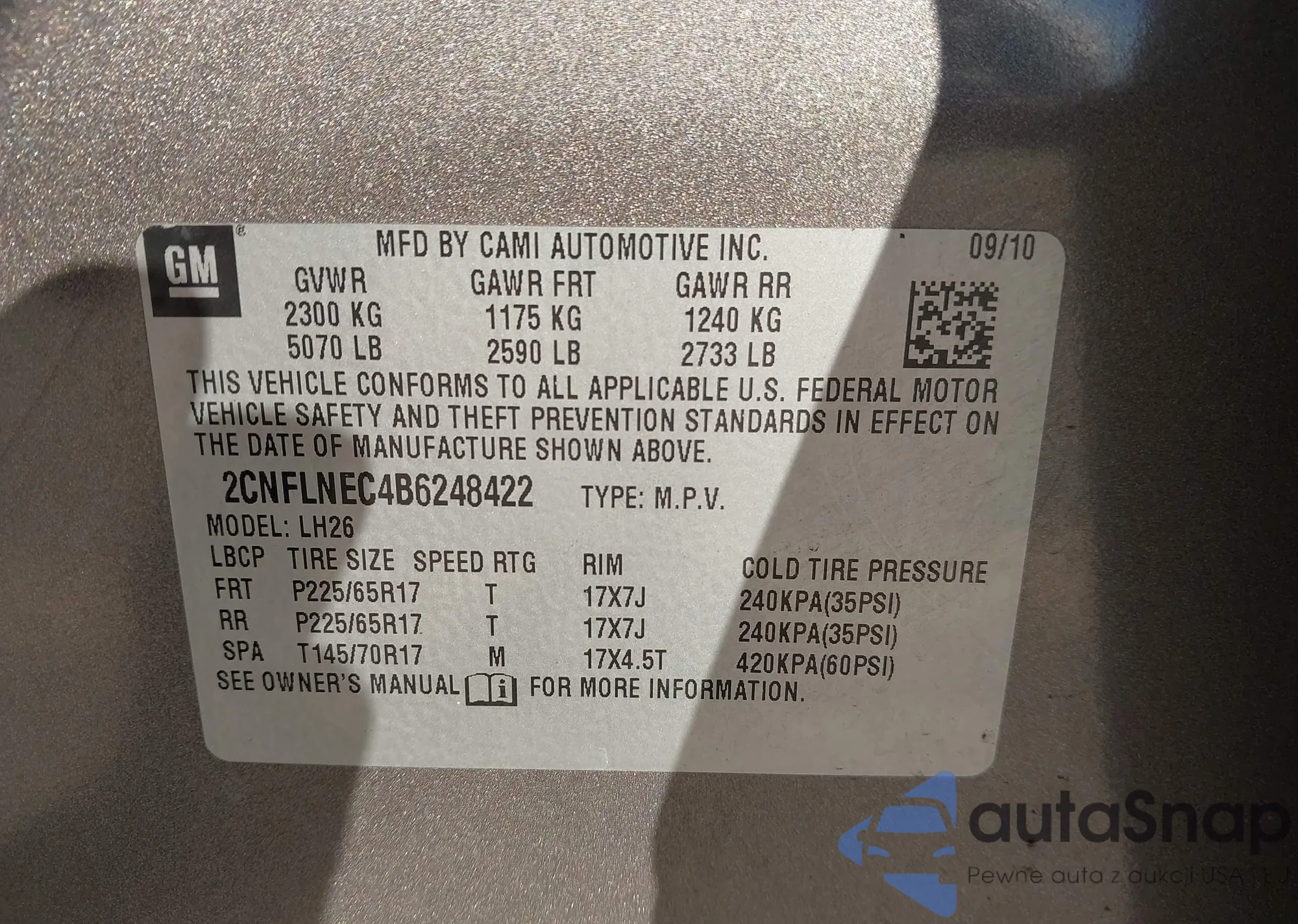 LOT: 43435095 VIN: 2CNFLNEC4B6248422