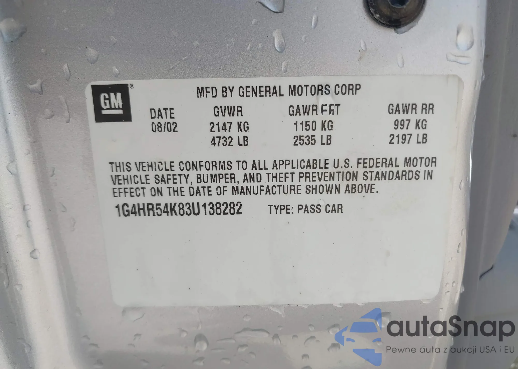 LOT: 42865440 VIN: 1G4HR54K83U138282