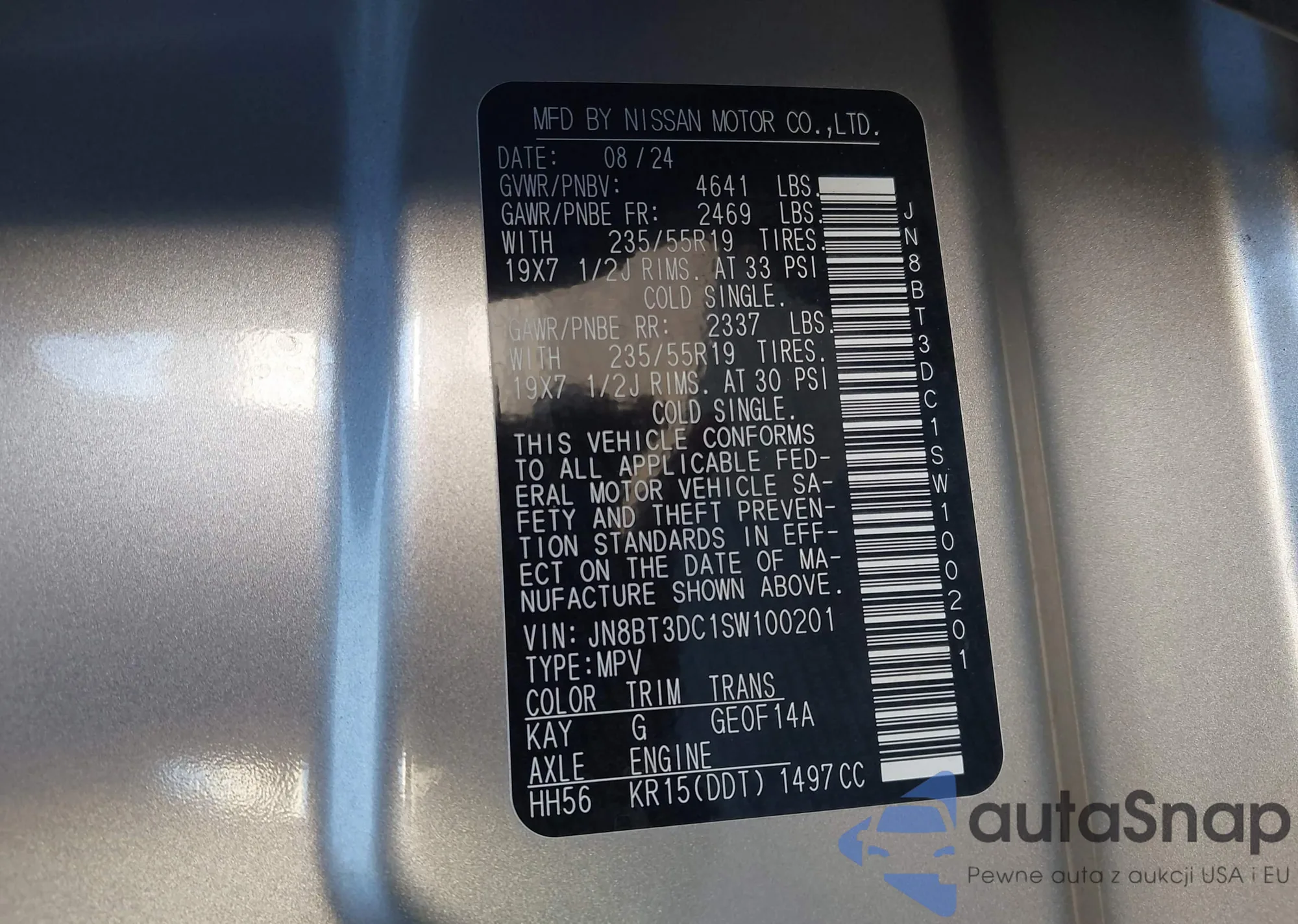 LOT: 43514247 VIN: JN8BT3DC1SW100201
