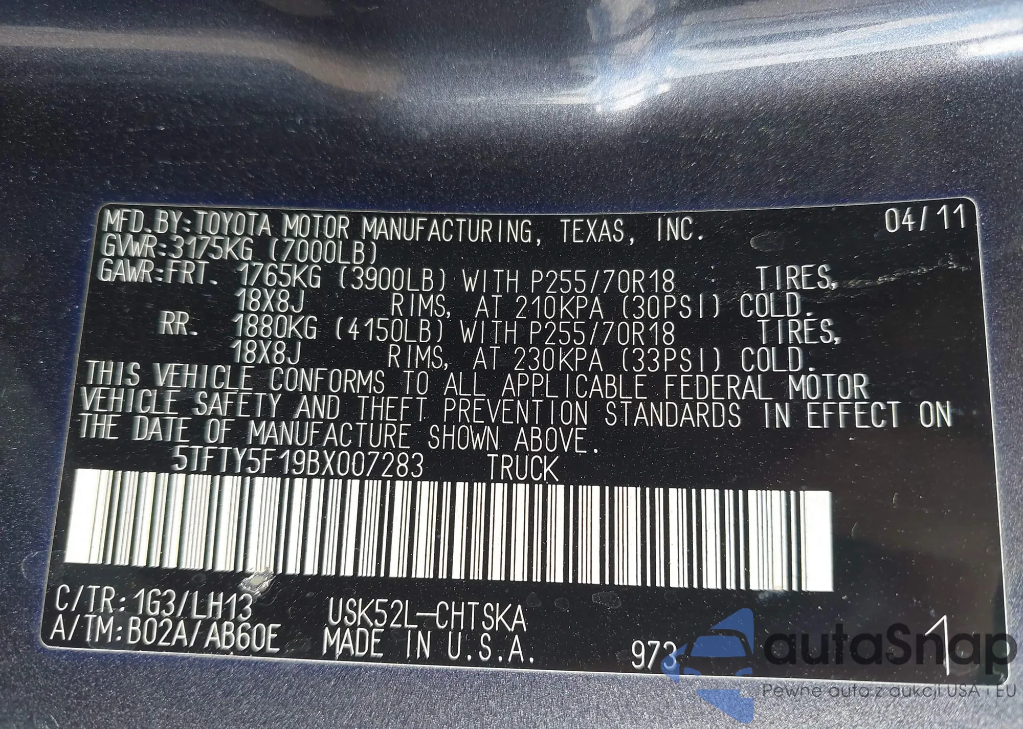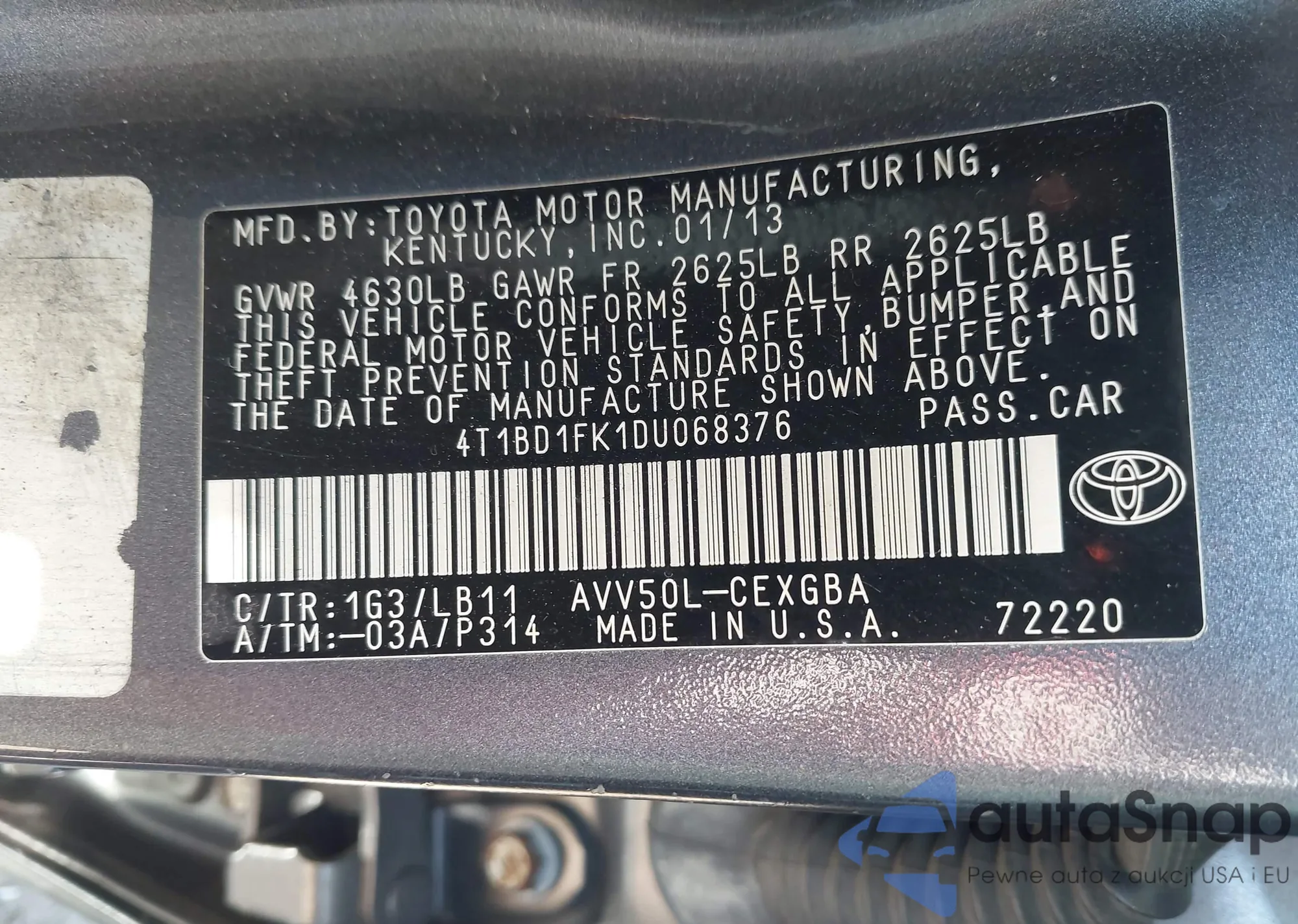 • VIN 4T1BD1FK1DU068376