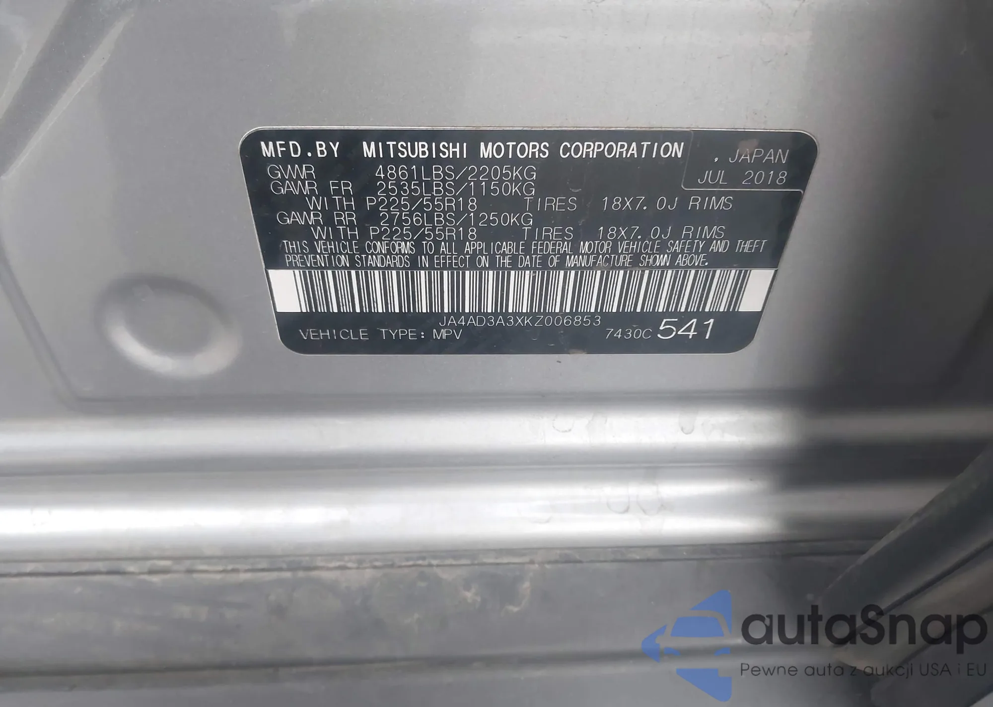 • VIN JA4AD3A3XKZ006853