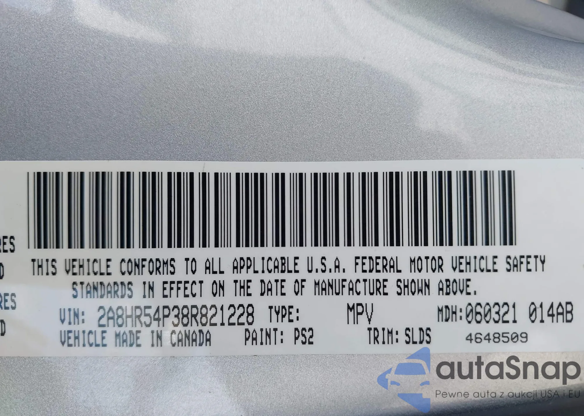 • VIN 2A8HR54P38R821228