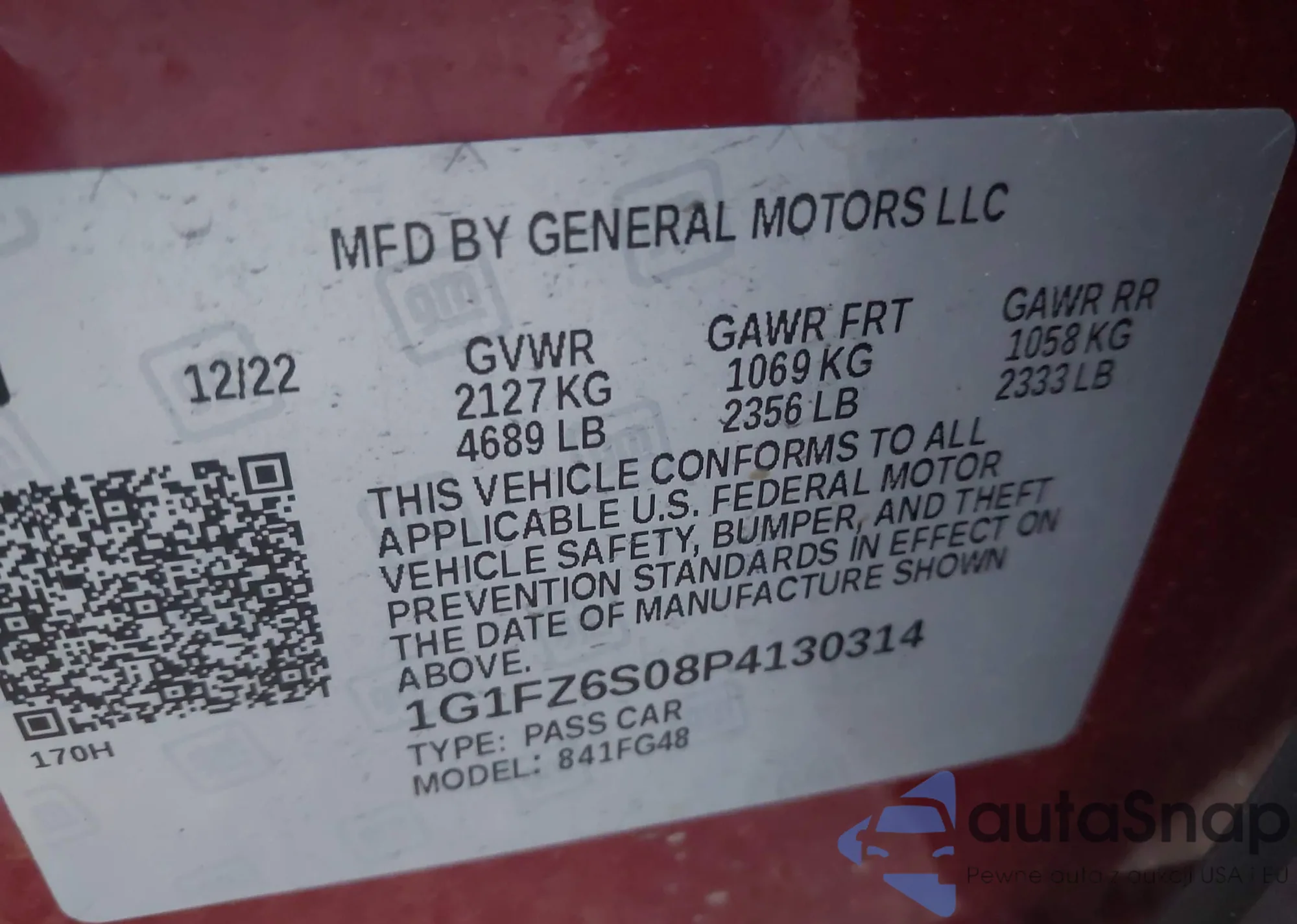 LOT: 41961253 VIN: 1G1FZ6S08P4130314