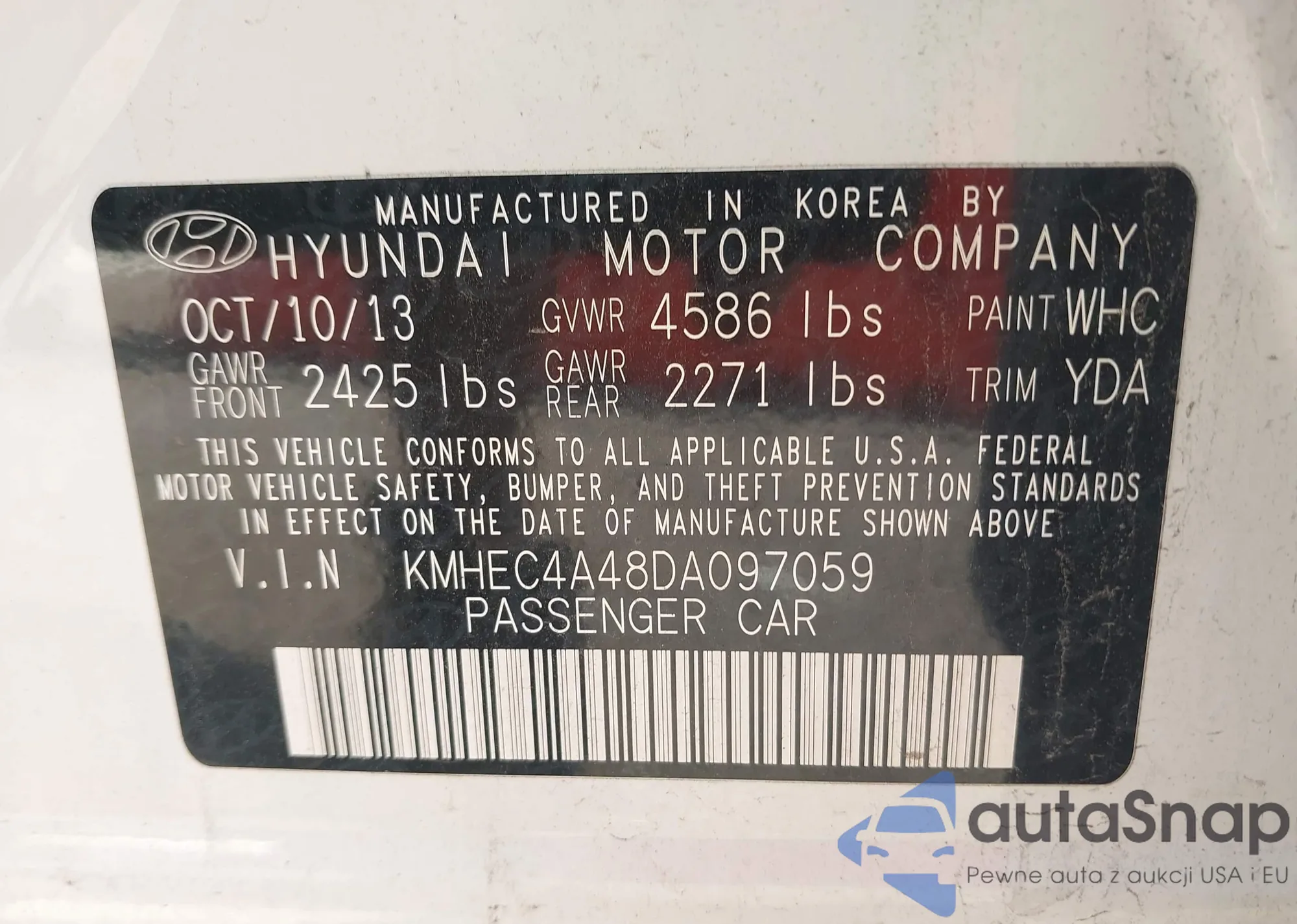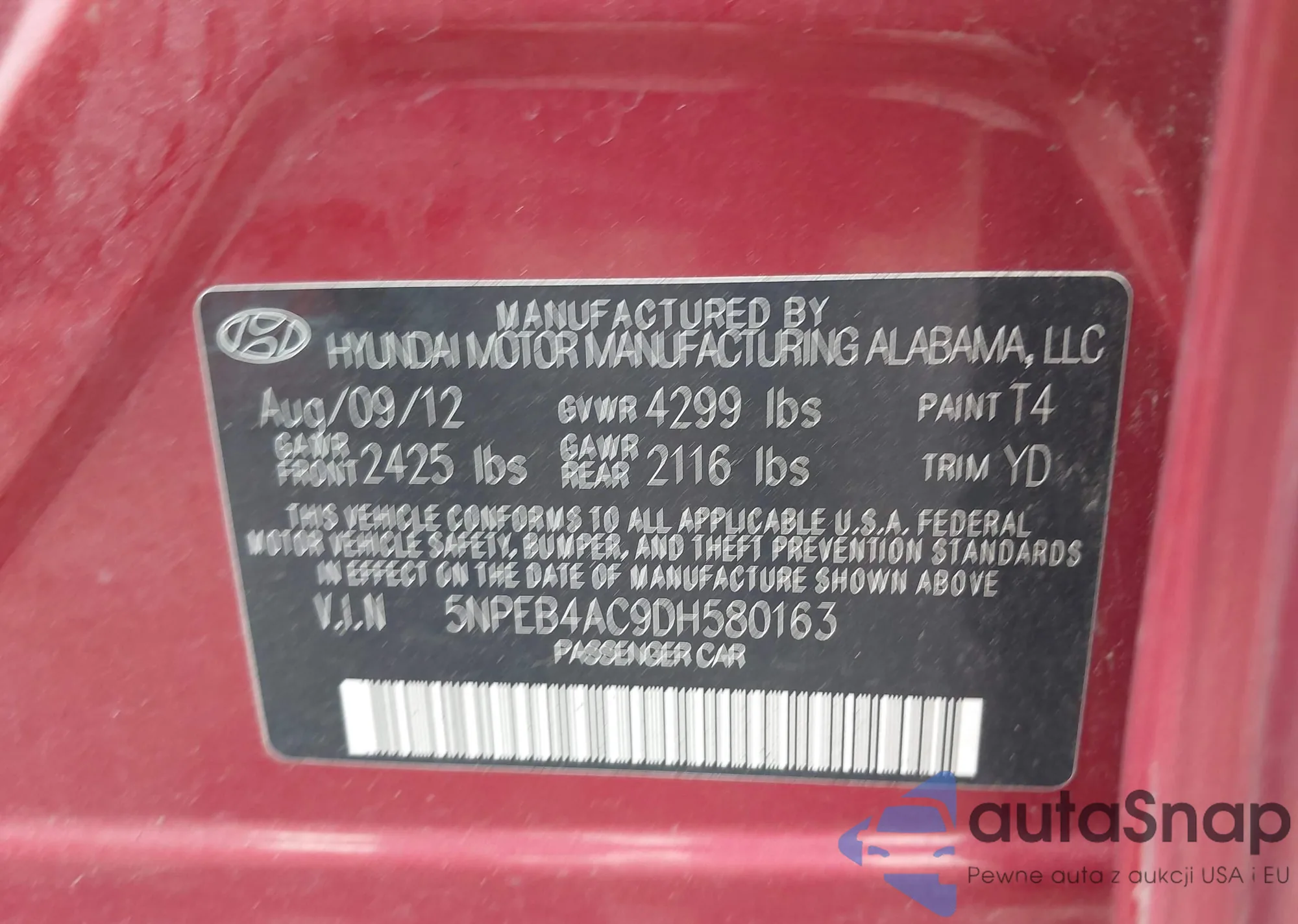 2013 Hyundai Sonata Gls из США, поврежденный, VIN 5NPEB4AC9DH580163