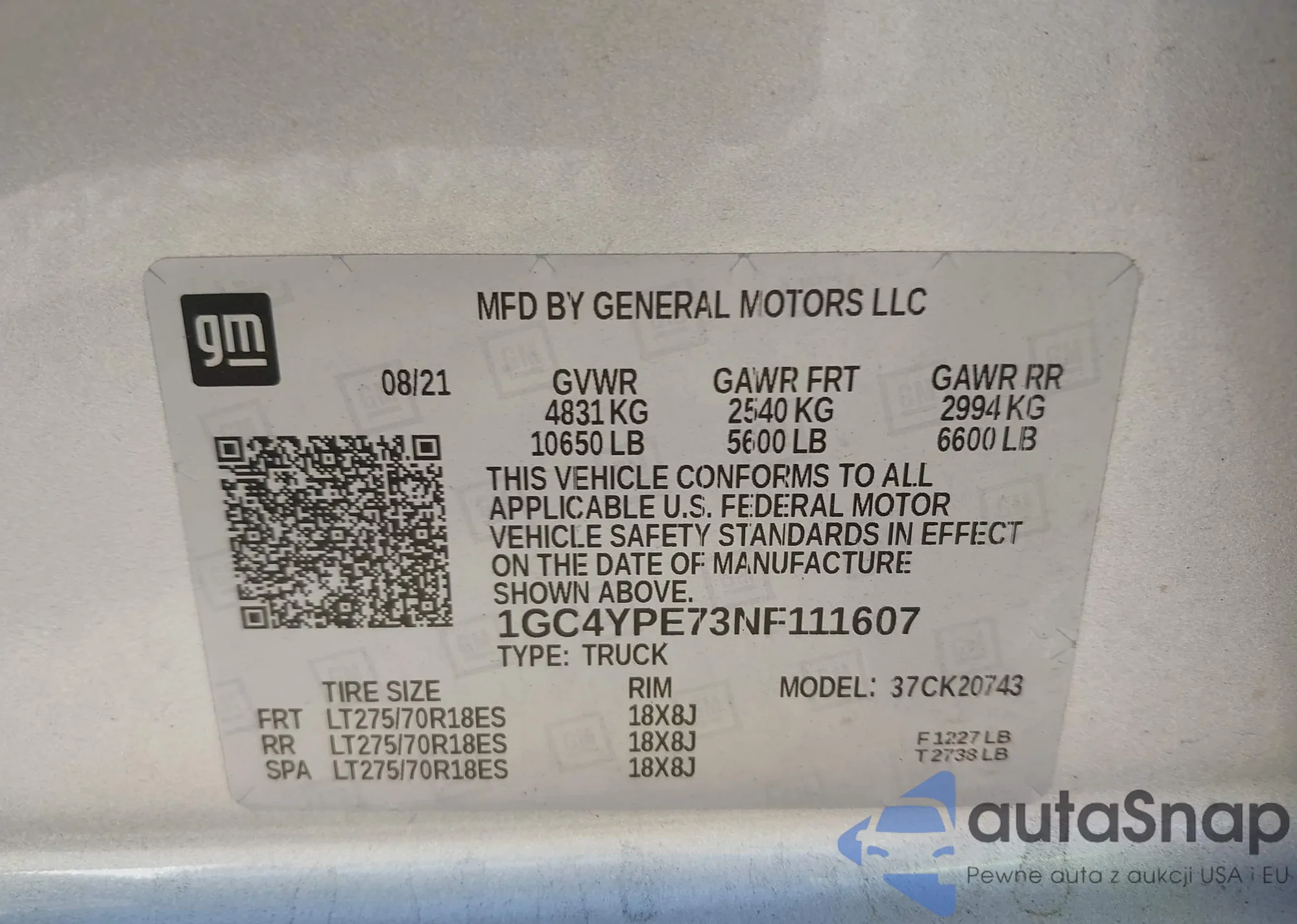 LOT: 43014482 VIN: 1GC4YPE73NF111607