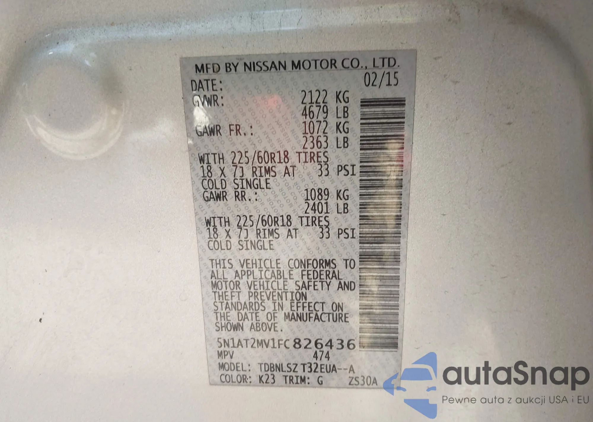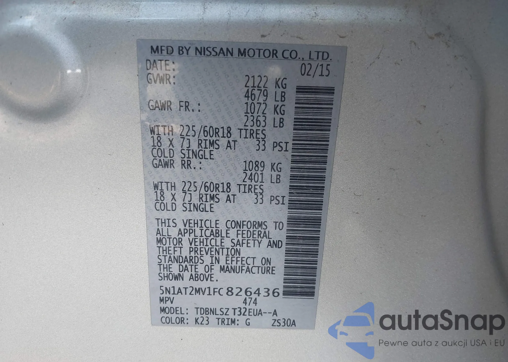 LOT: 43329878 VIN: 5N1AT2MV1FC826436
