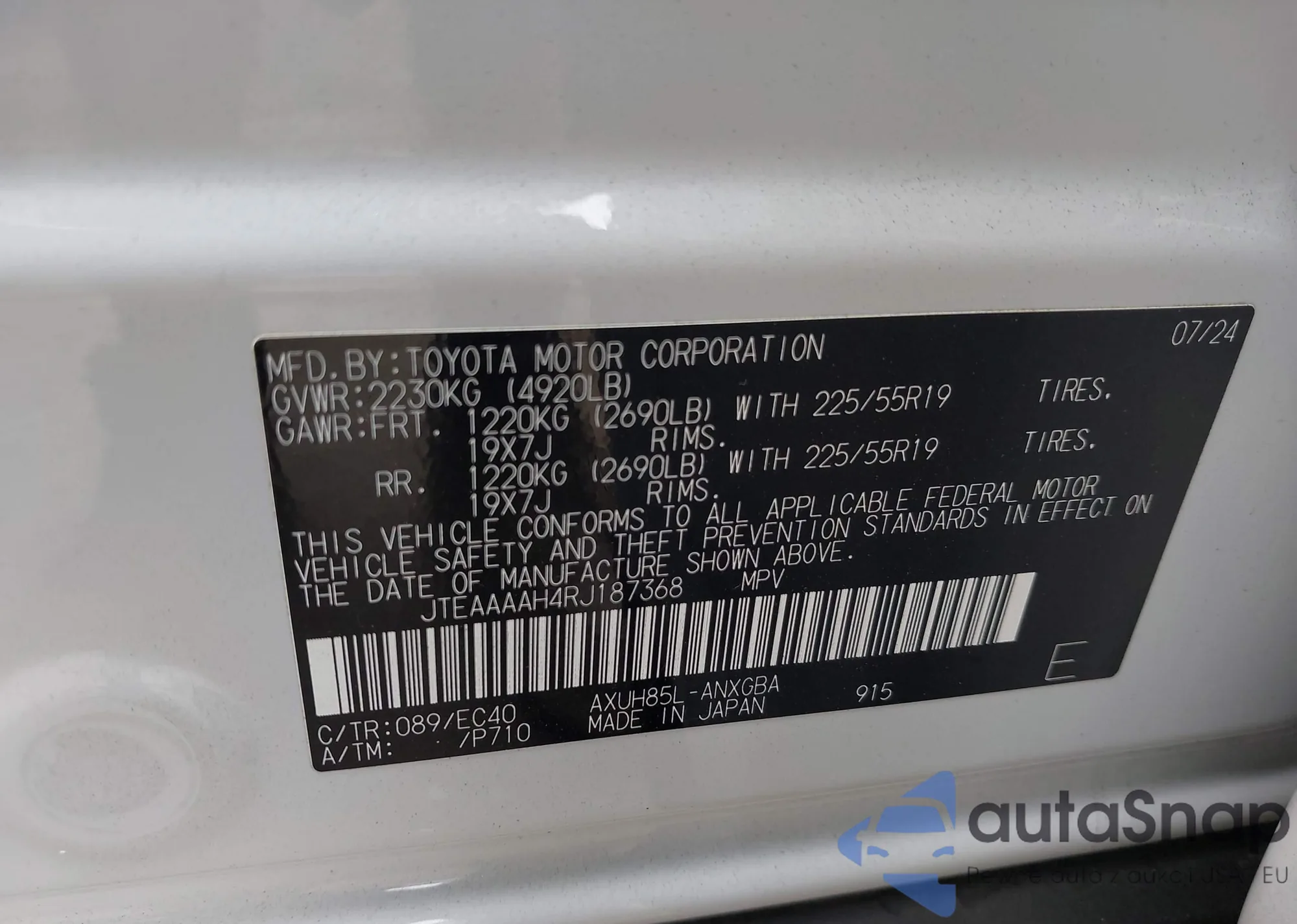 • VIN JTEAAAAH4RJ187368