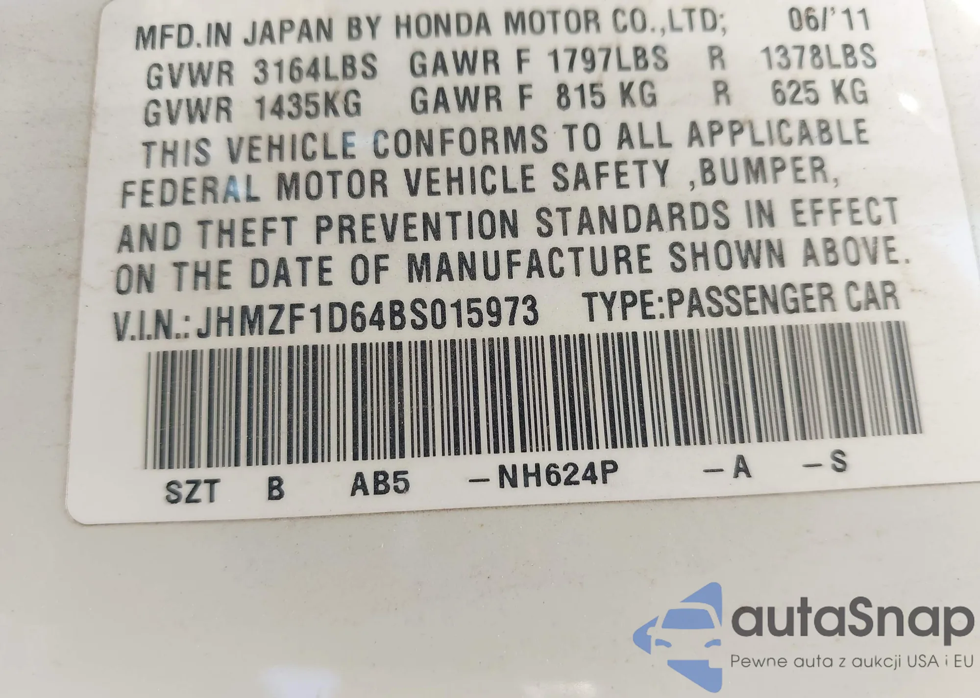 • VIN JHMZF1D64BS015973