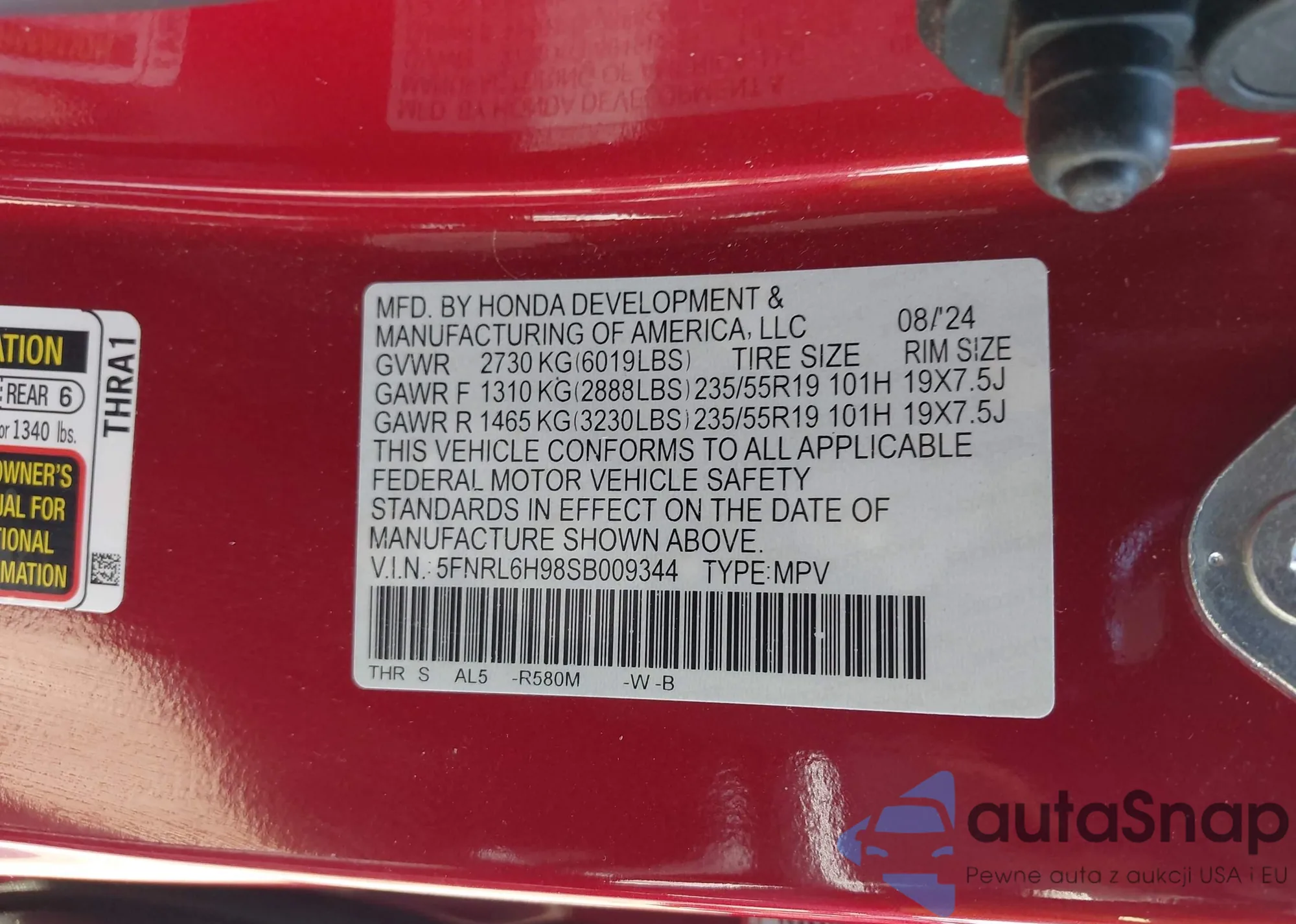 • VIN 5FNRL6H98SB009344
