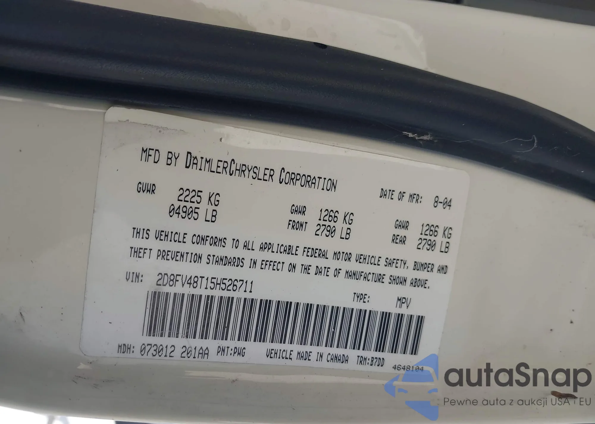 • VIN 2D8FV48T15H526711