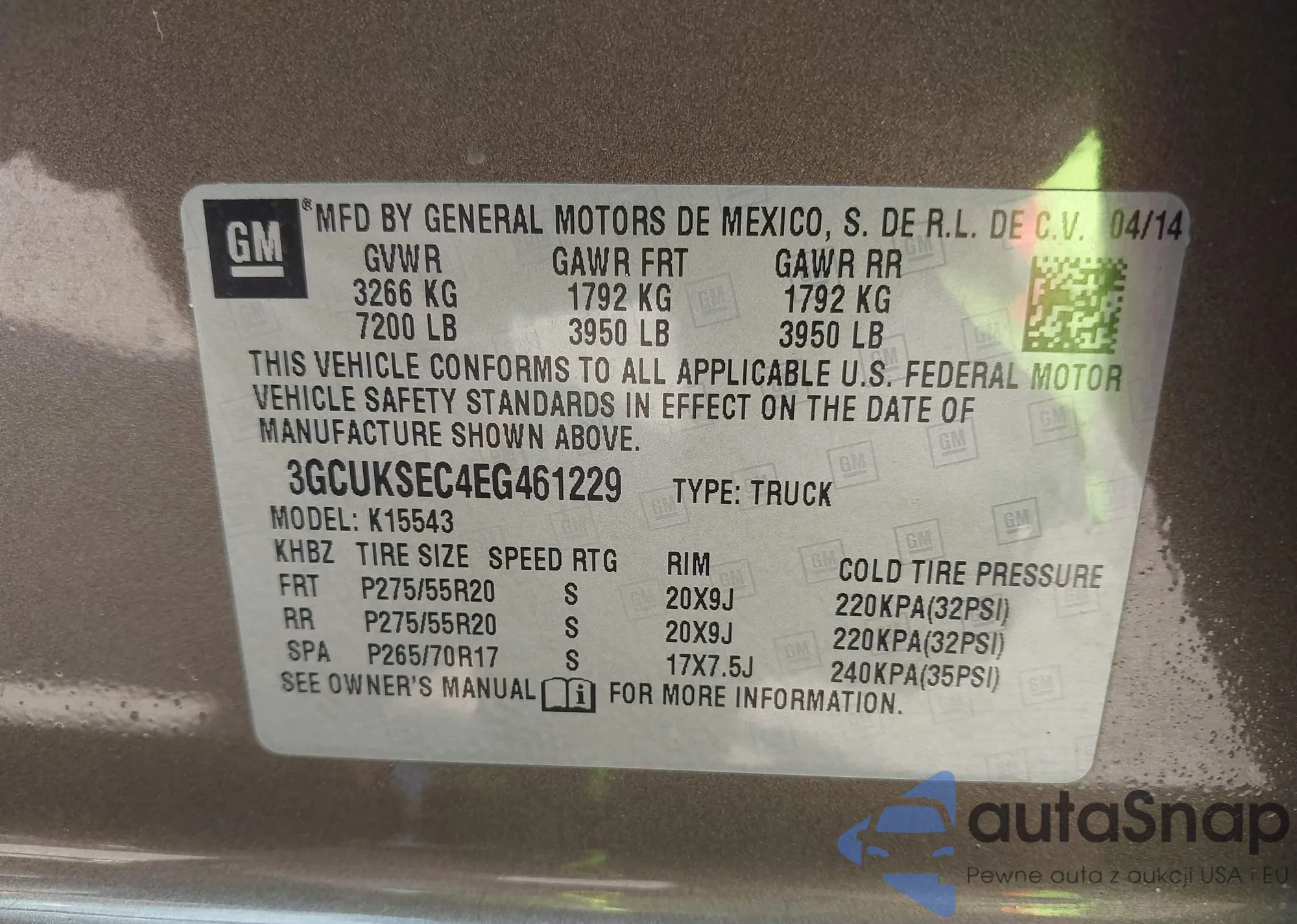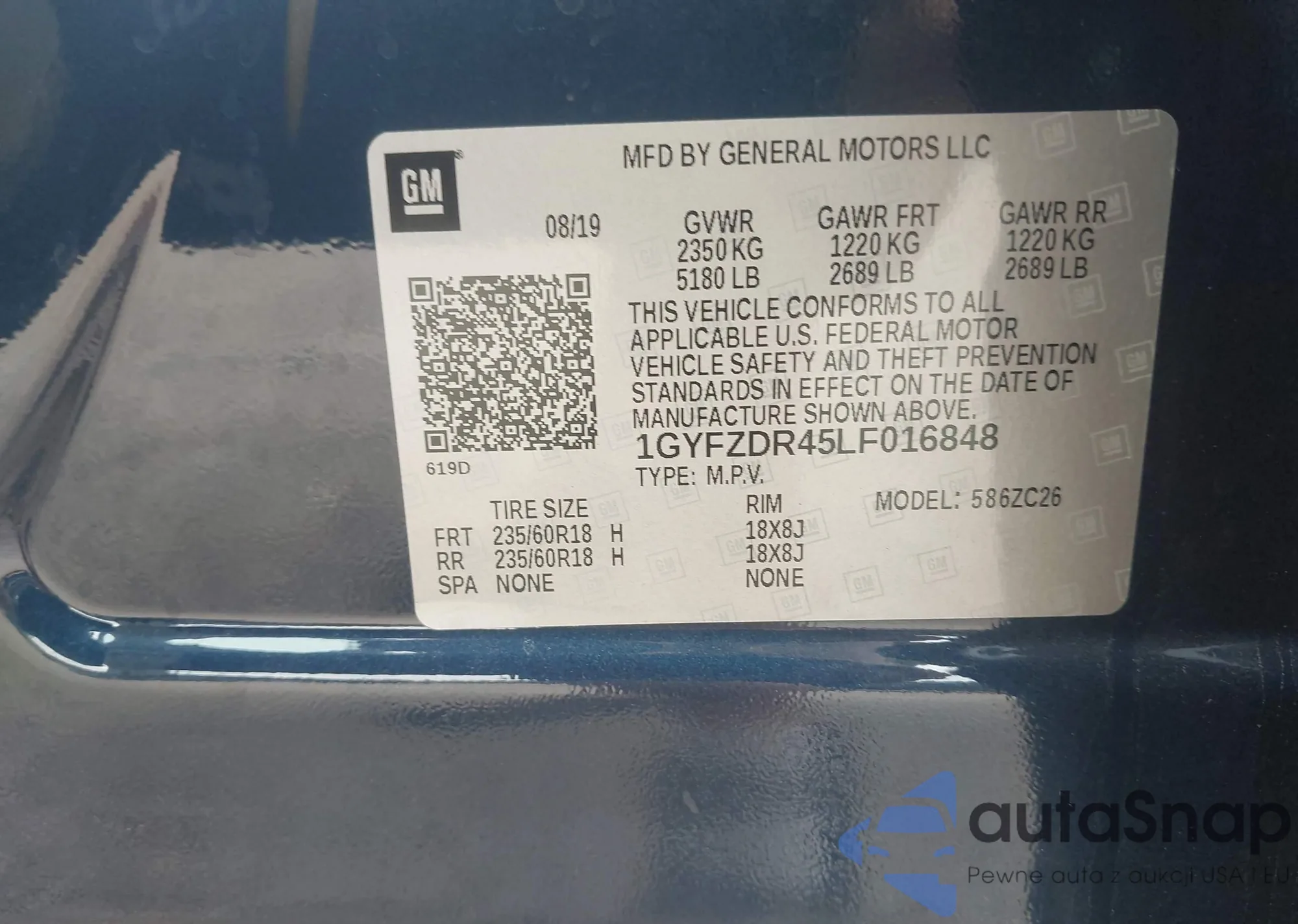 • VIN 1GYFZDR45LF016848