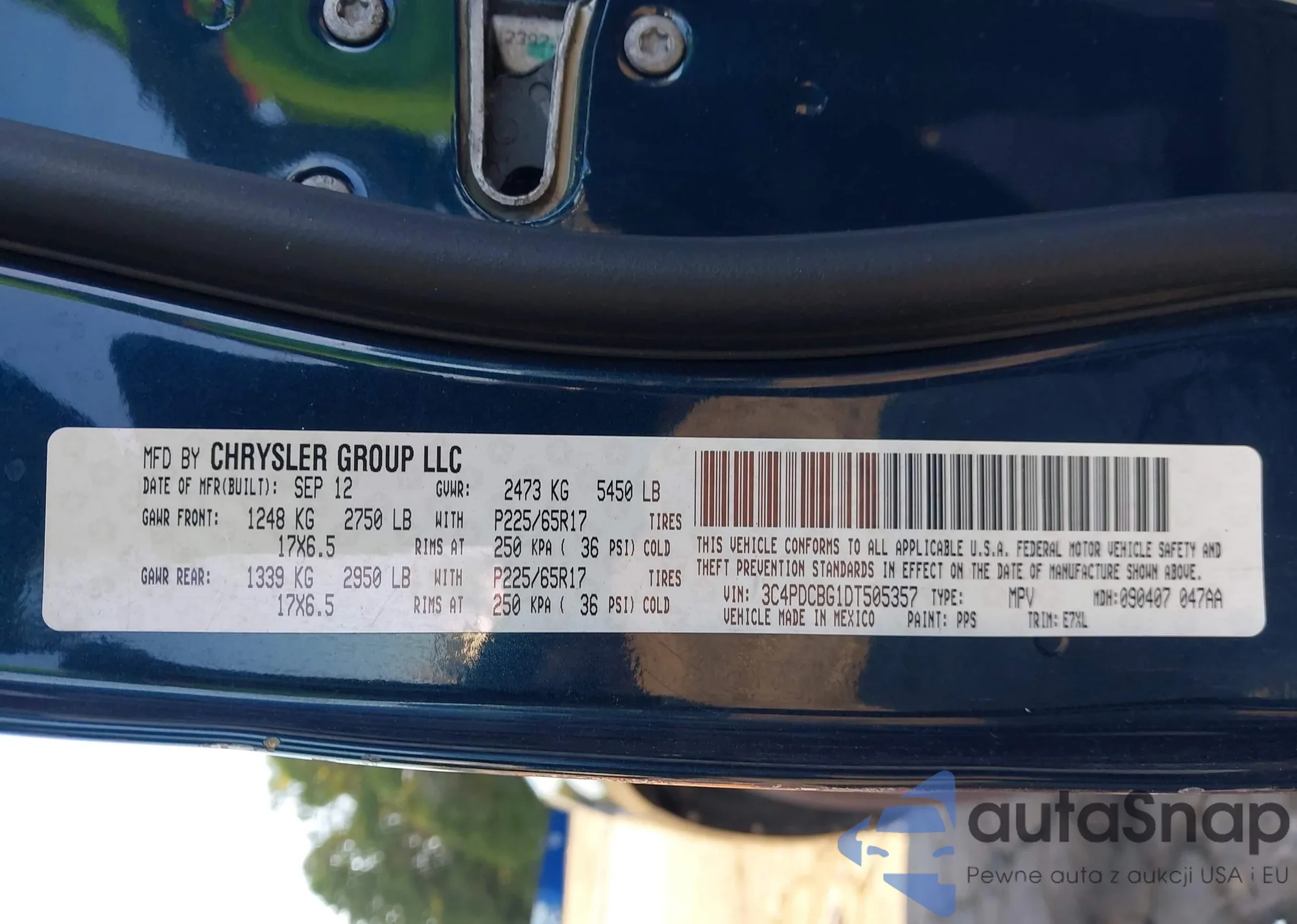 LOT: 43320253 VIN: 3C4PDCBG1DT505357