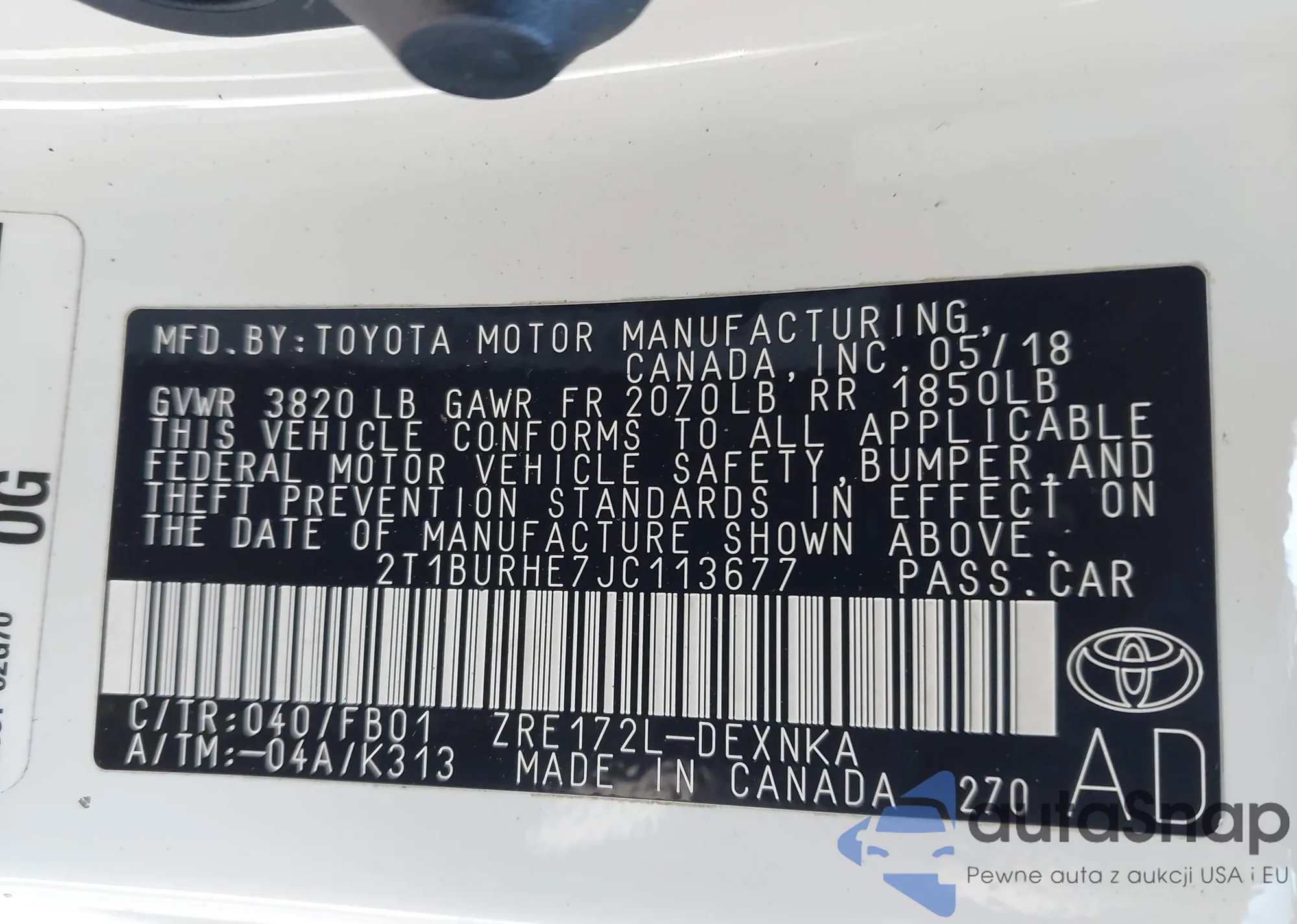 LOT: 42548742 VIN: 2T3W1RFV6RC274036