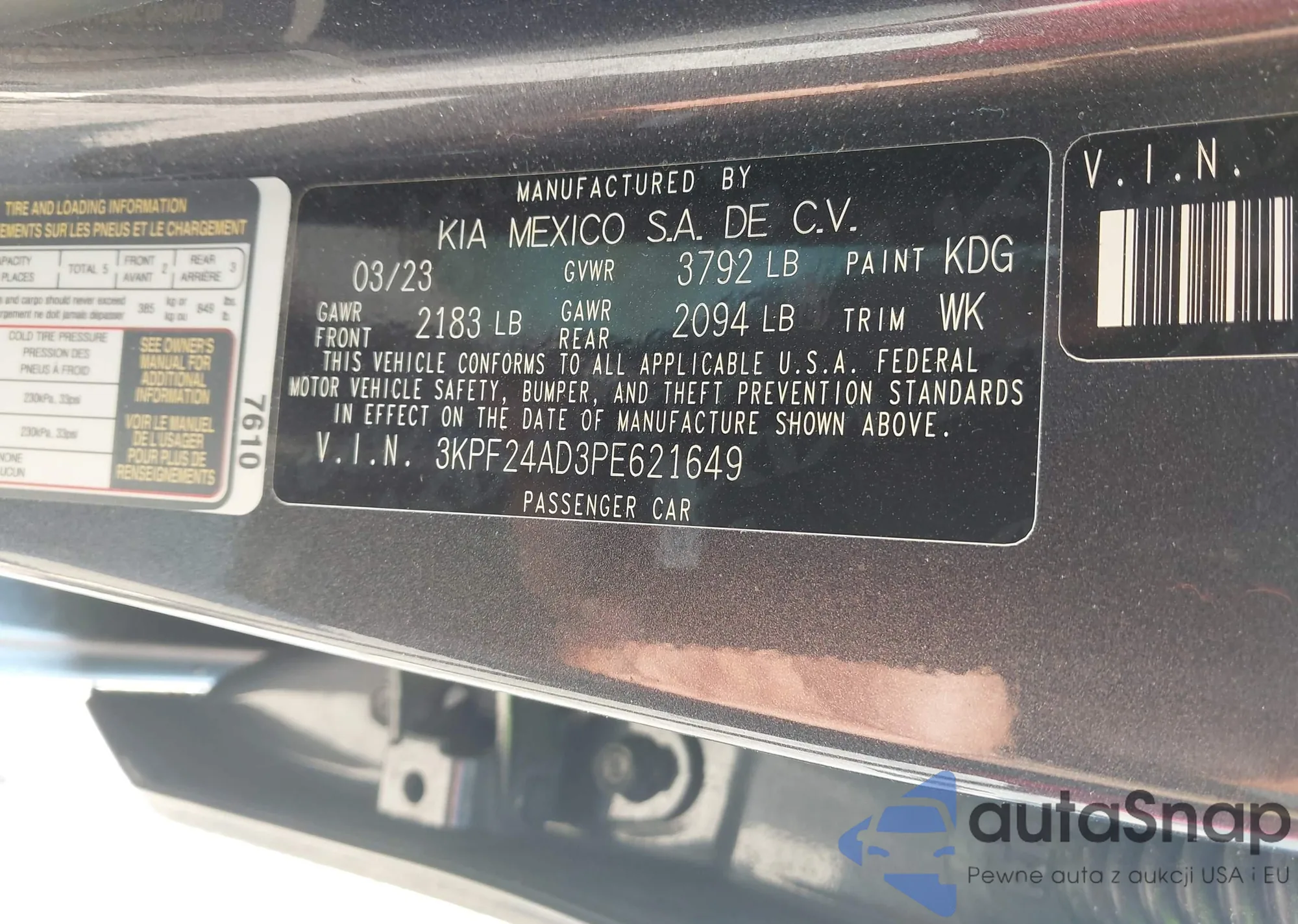 • VIN 3KPF24AD3PE621649