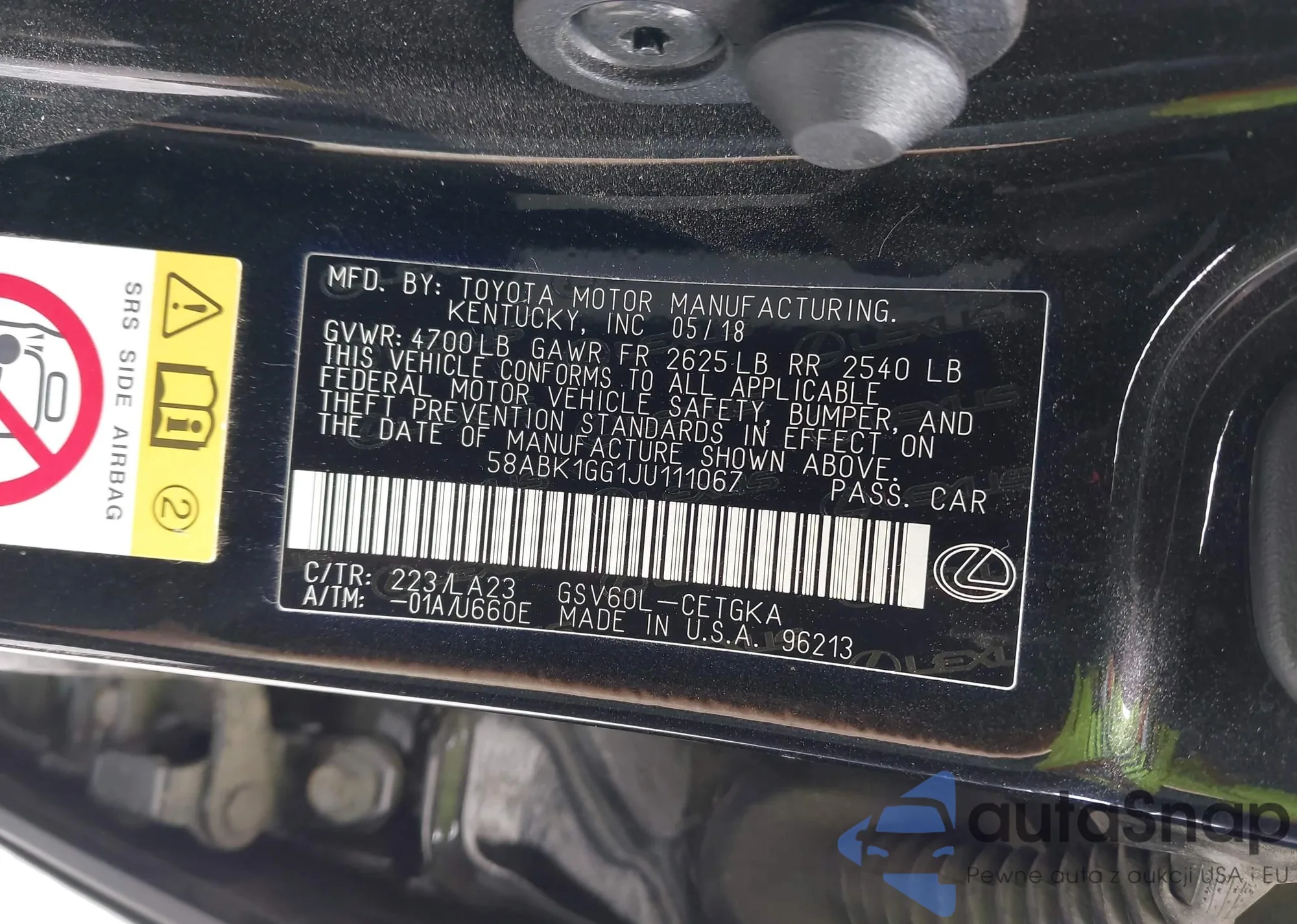 LOT: 42766151 VIN: 58ABK1GG1JU111067