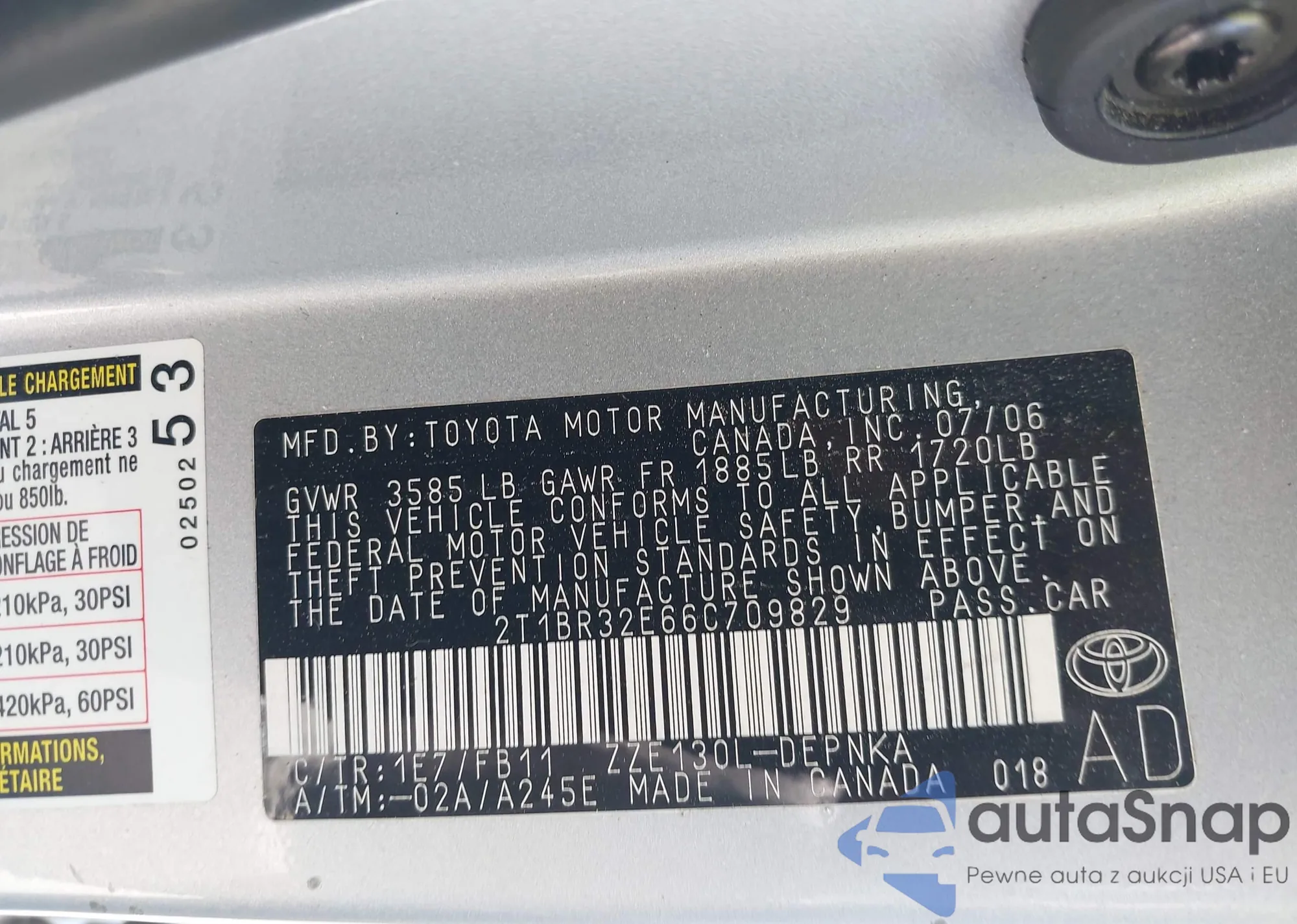 • VIN 2T1BR32E66C709829