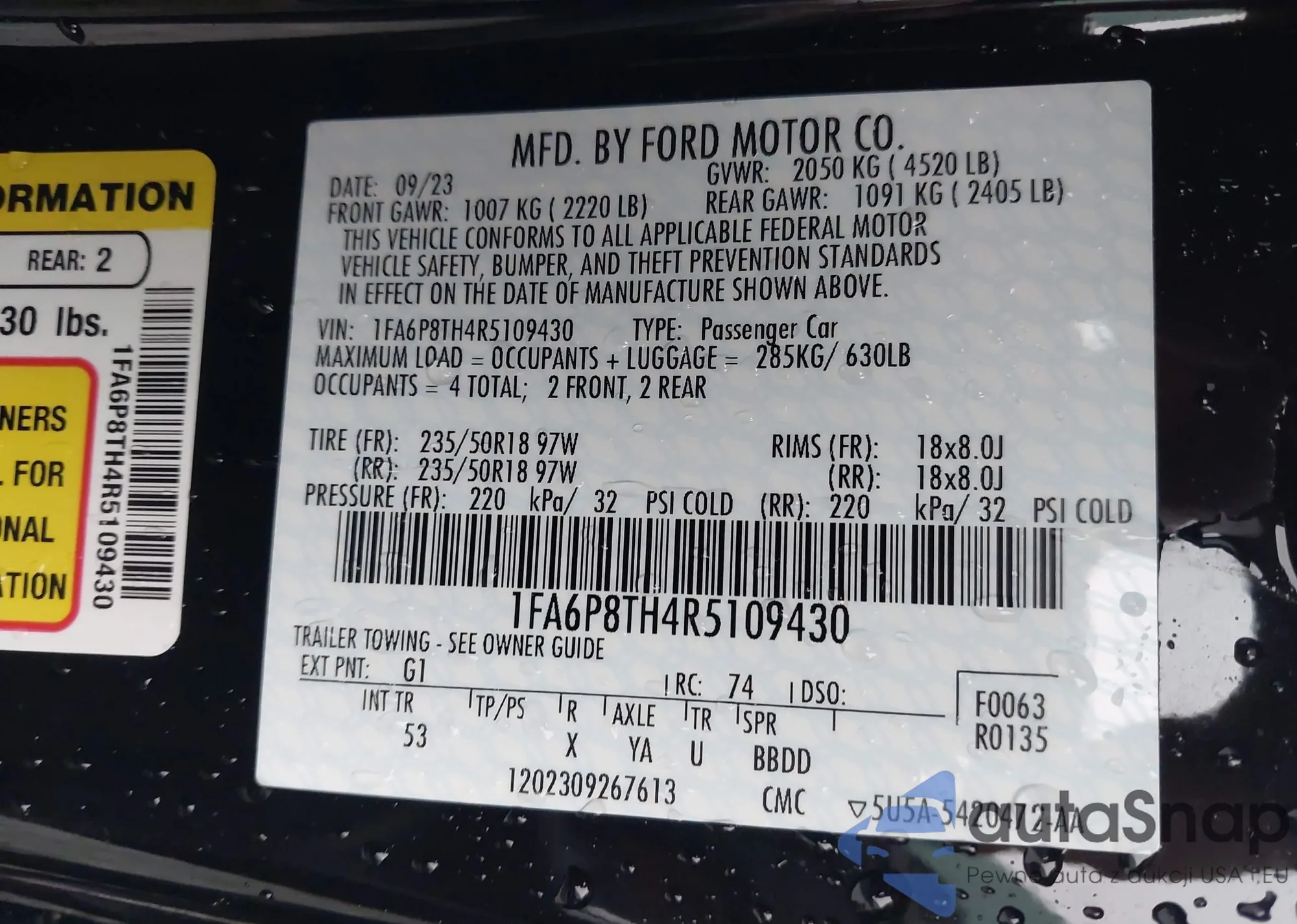 • VIN 1FA6P8TH4R5109430