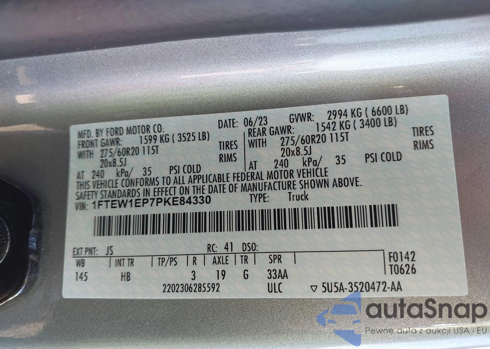 LOT: 43225091 VIN: 1FTEW1EP7PKE84330
