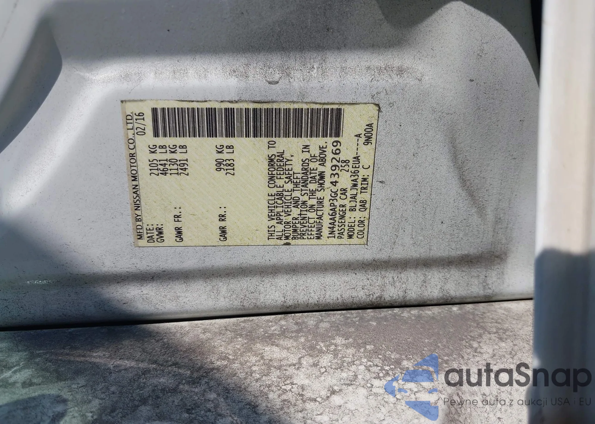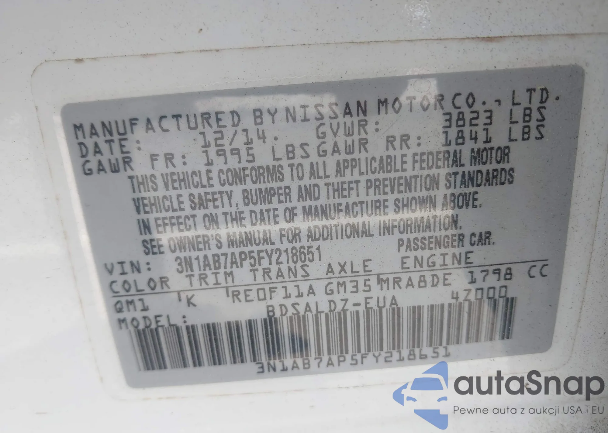 LOT: 43370920 VIN: 3N1AB7AP5FY218651