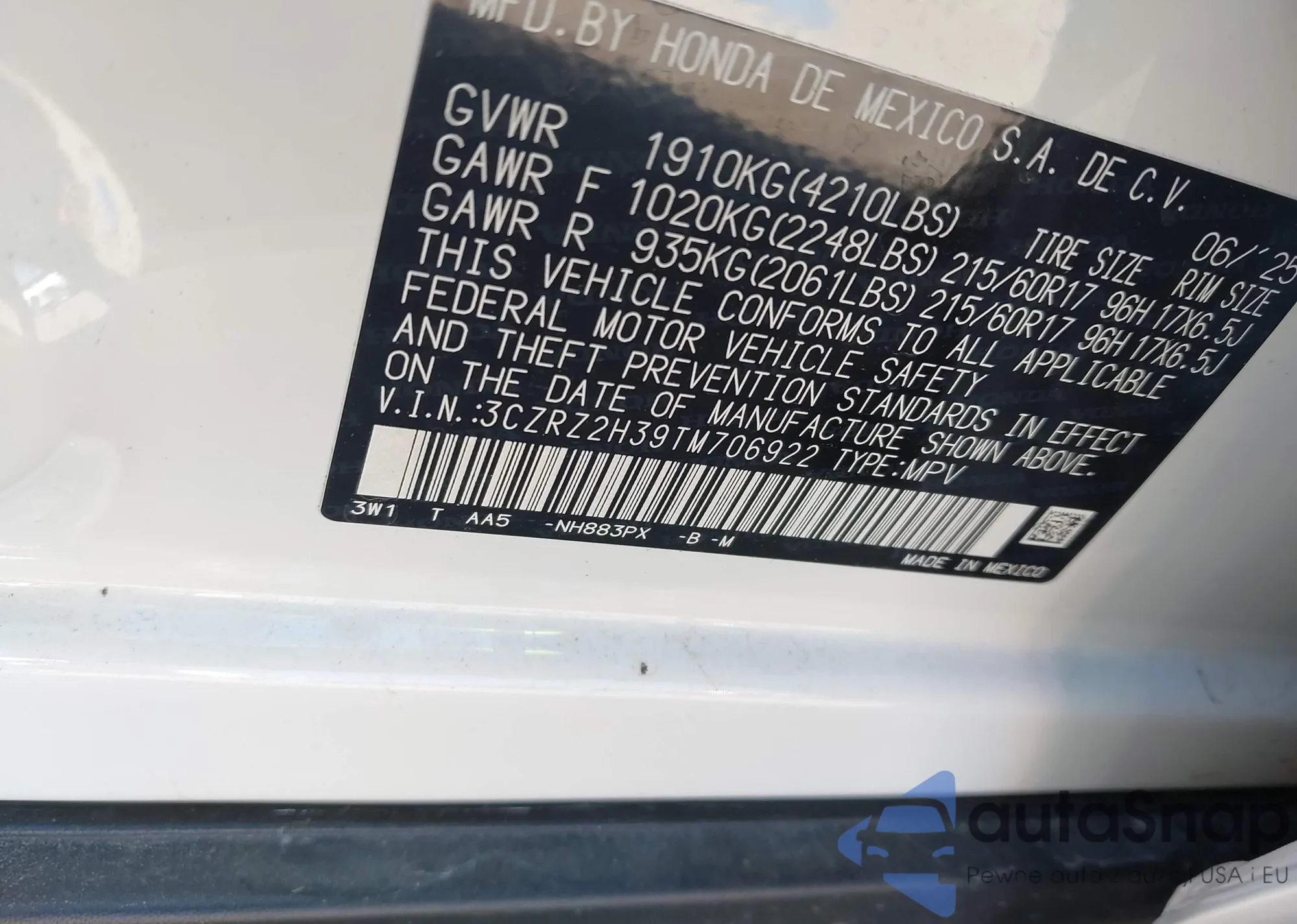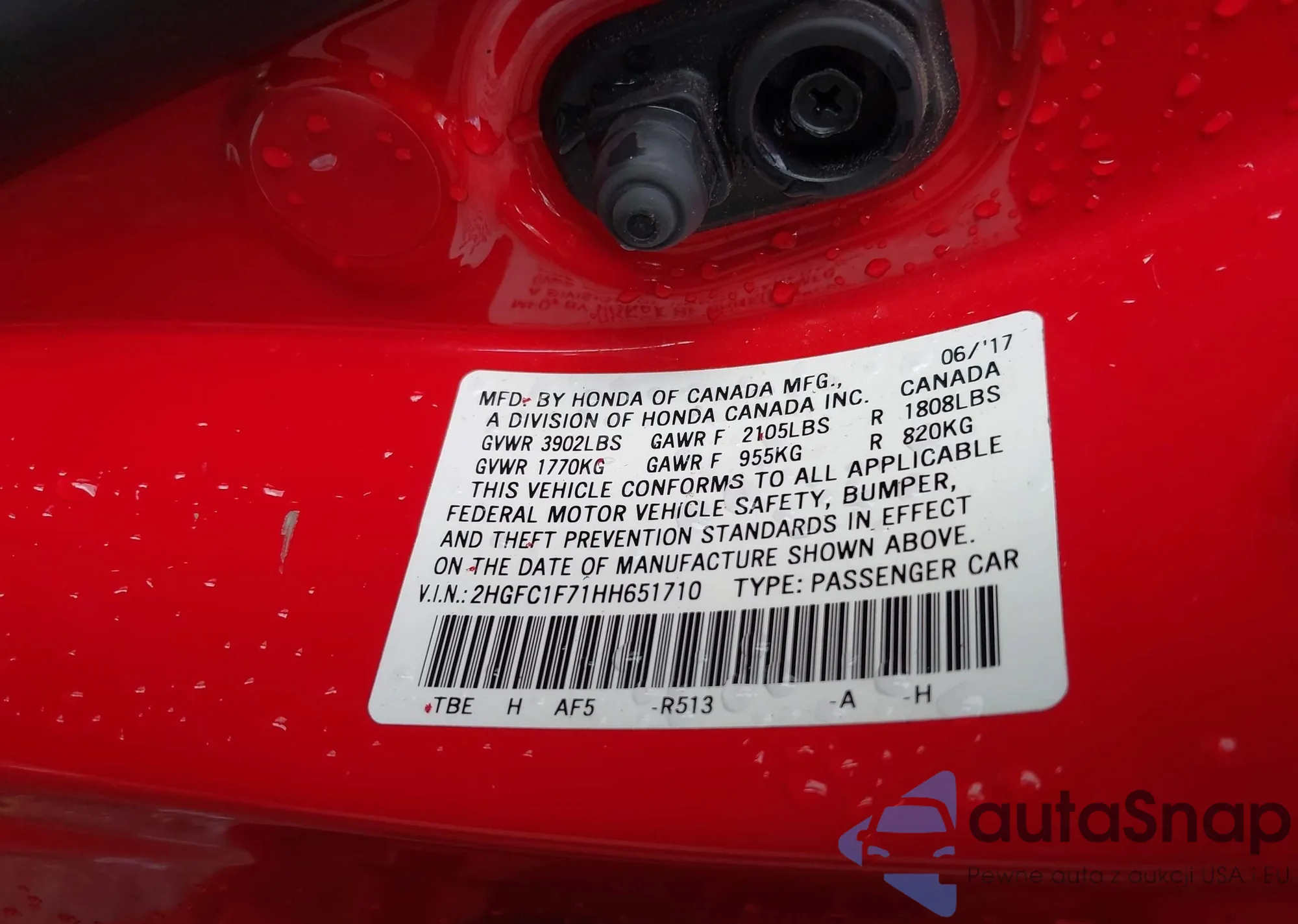 • VIN 2HGFC1F71HH651710