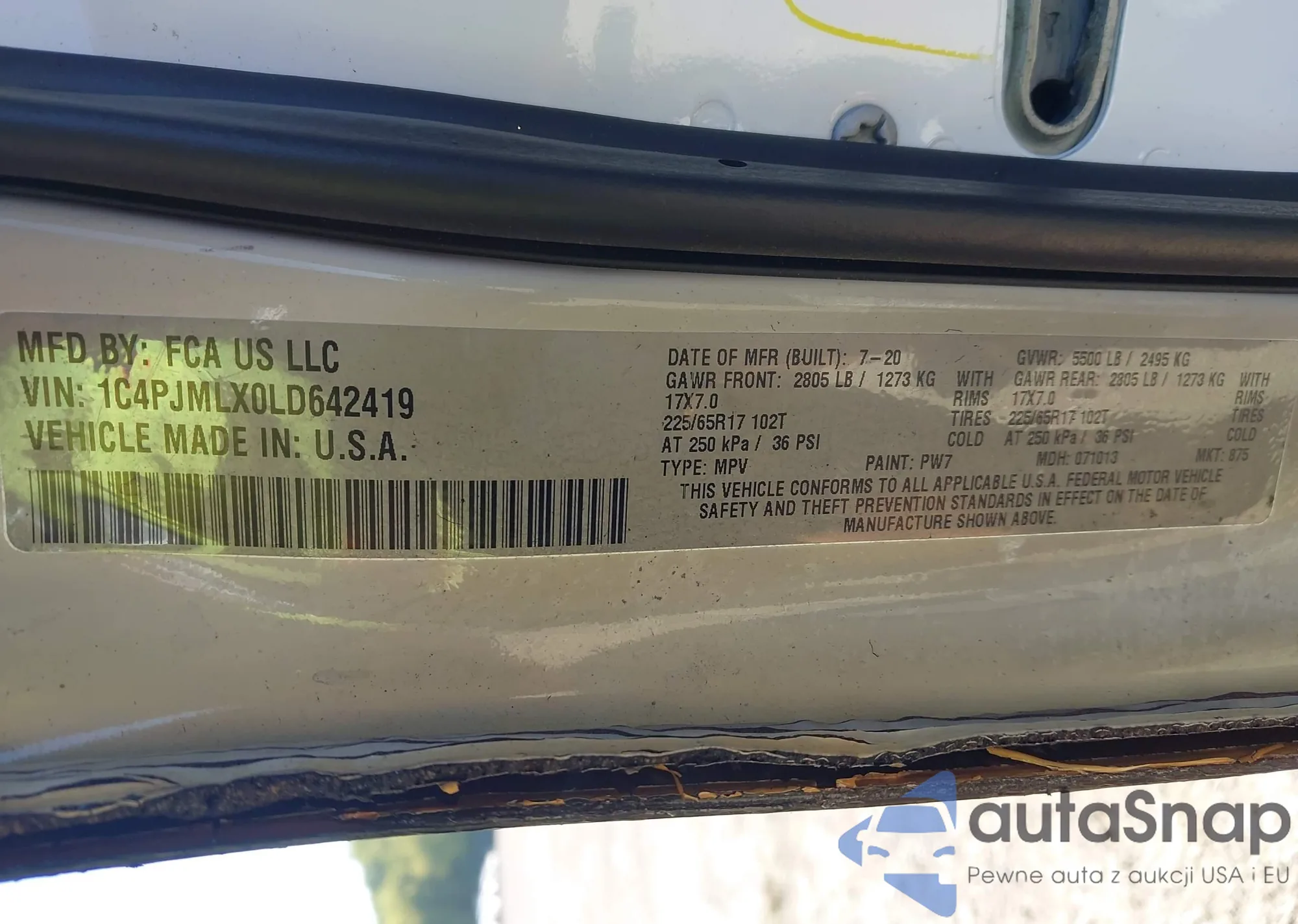 LOT: 43240877 VIN: 1C4PJMLX0LD642419
