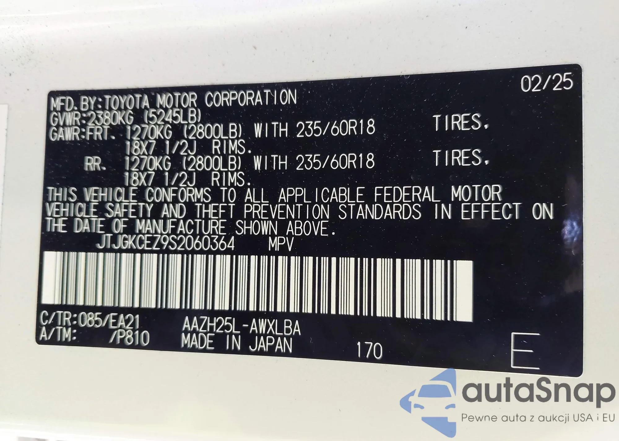 • VIN JTJGKCEZ9S2060364