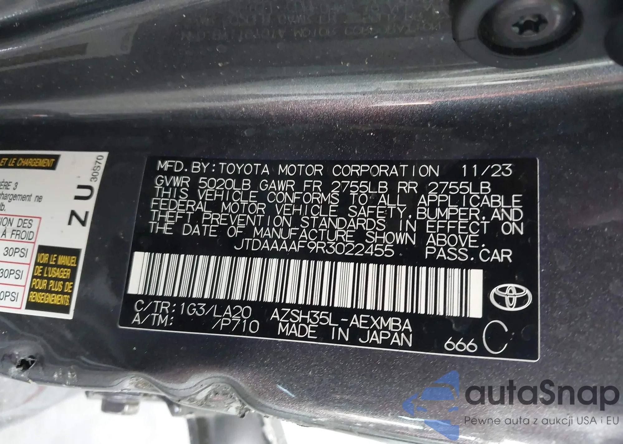 • VIN JTDAAAAF9R3022455