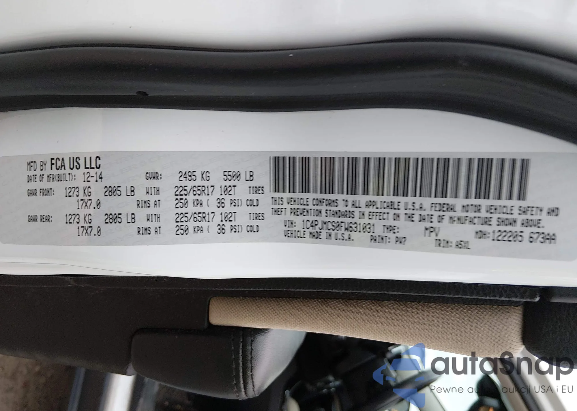 LOT: 43796894 VIN: 1C4PJMCS0FW631031
