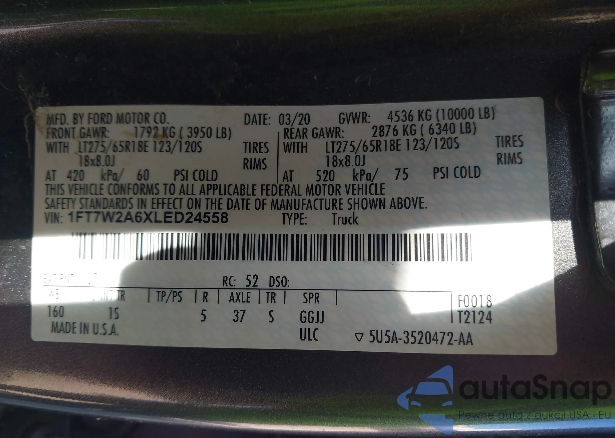 • VIN 1FT7W2A6XLED24558