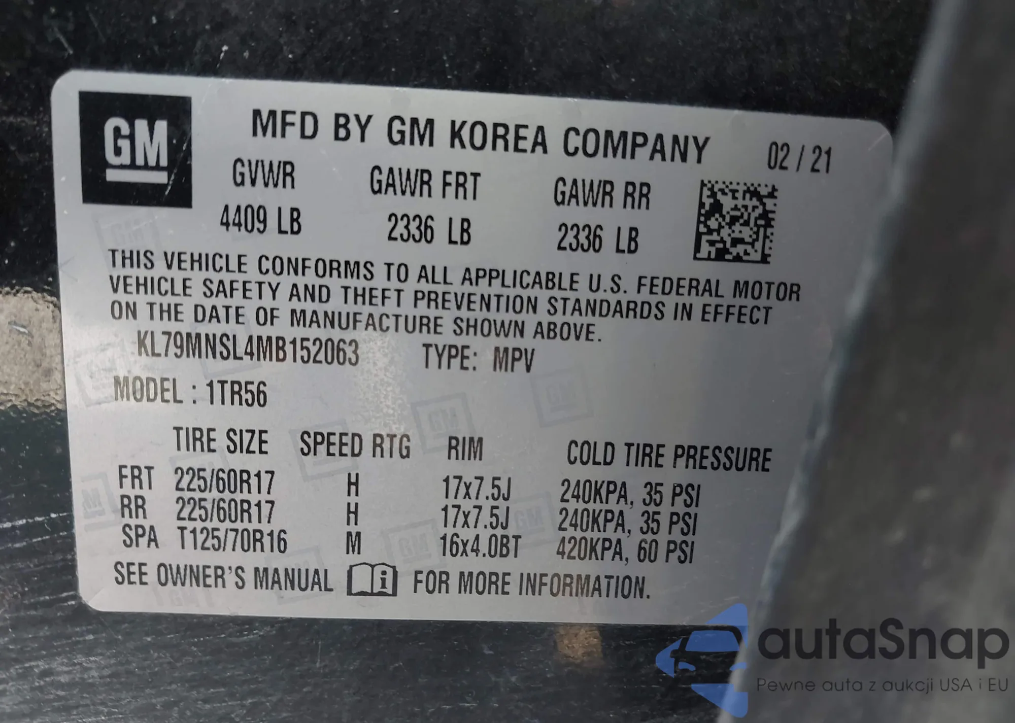 • VIN KL79MNSL4MB152063