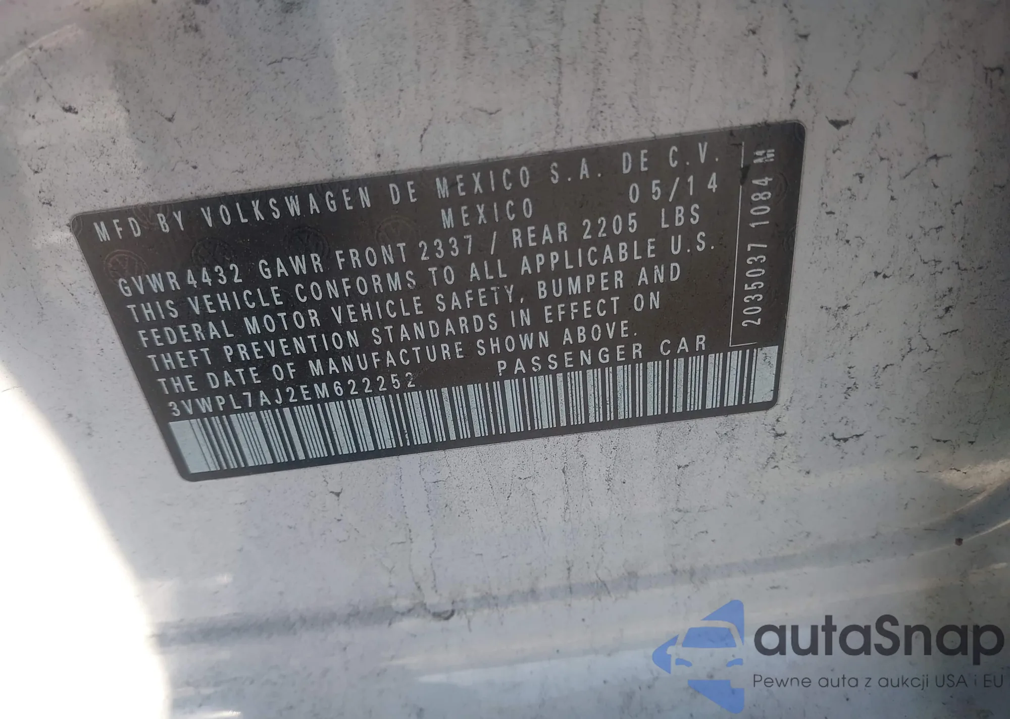 • VIN 3VWPL7AJ2EM622252