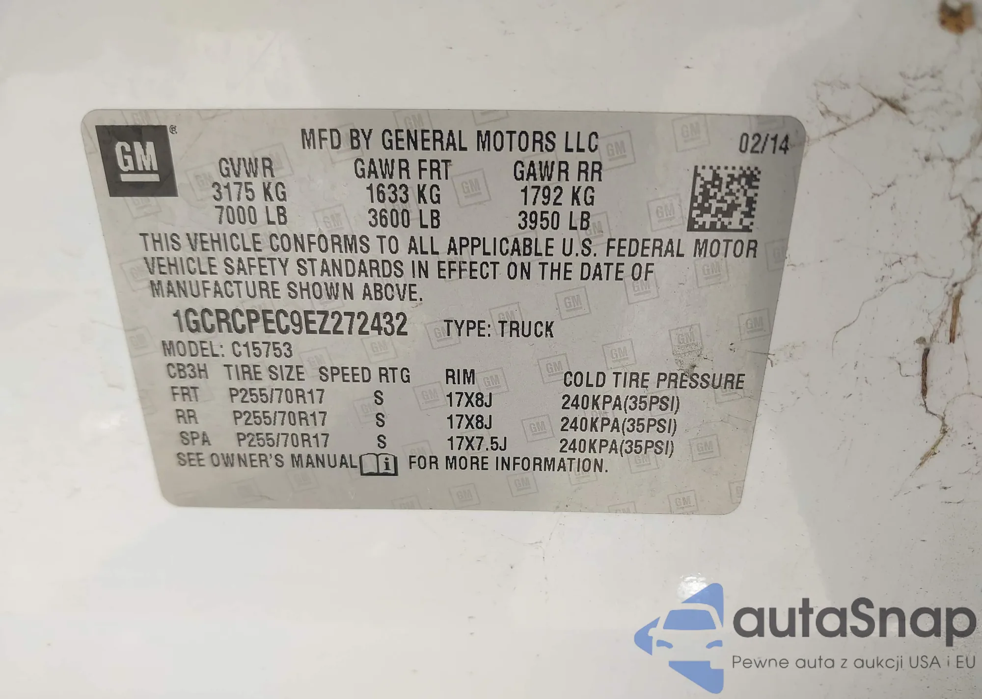 • VIN 1GCRCPEC9EZ272432