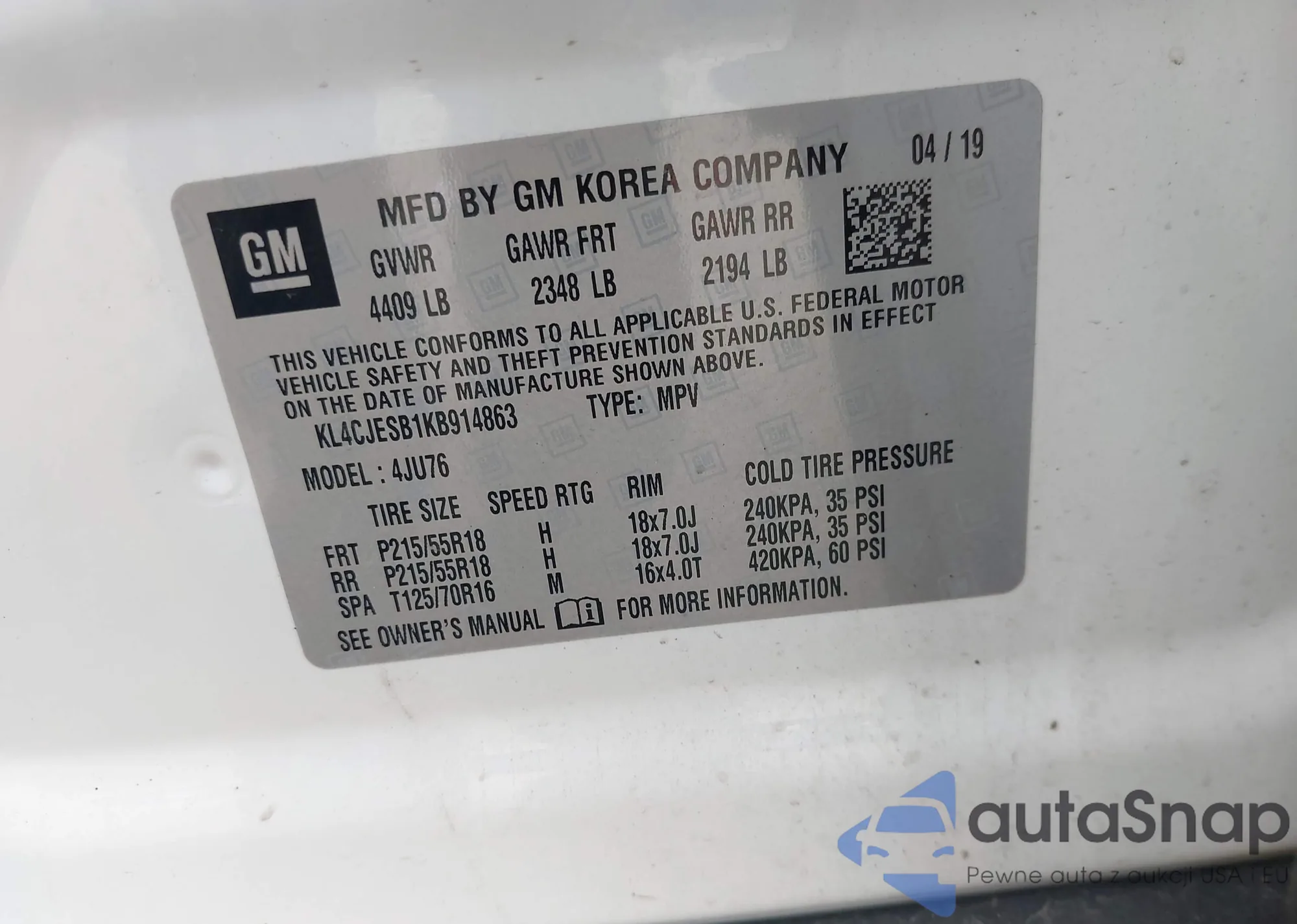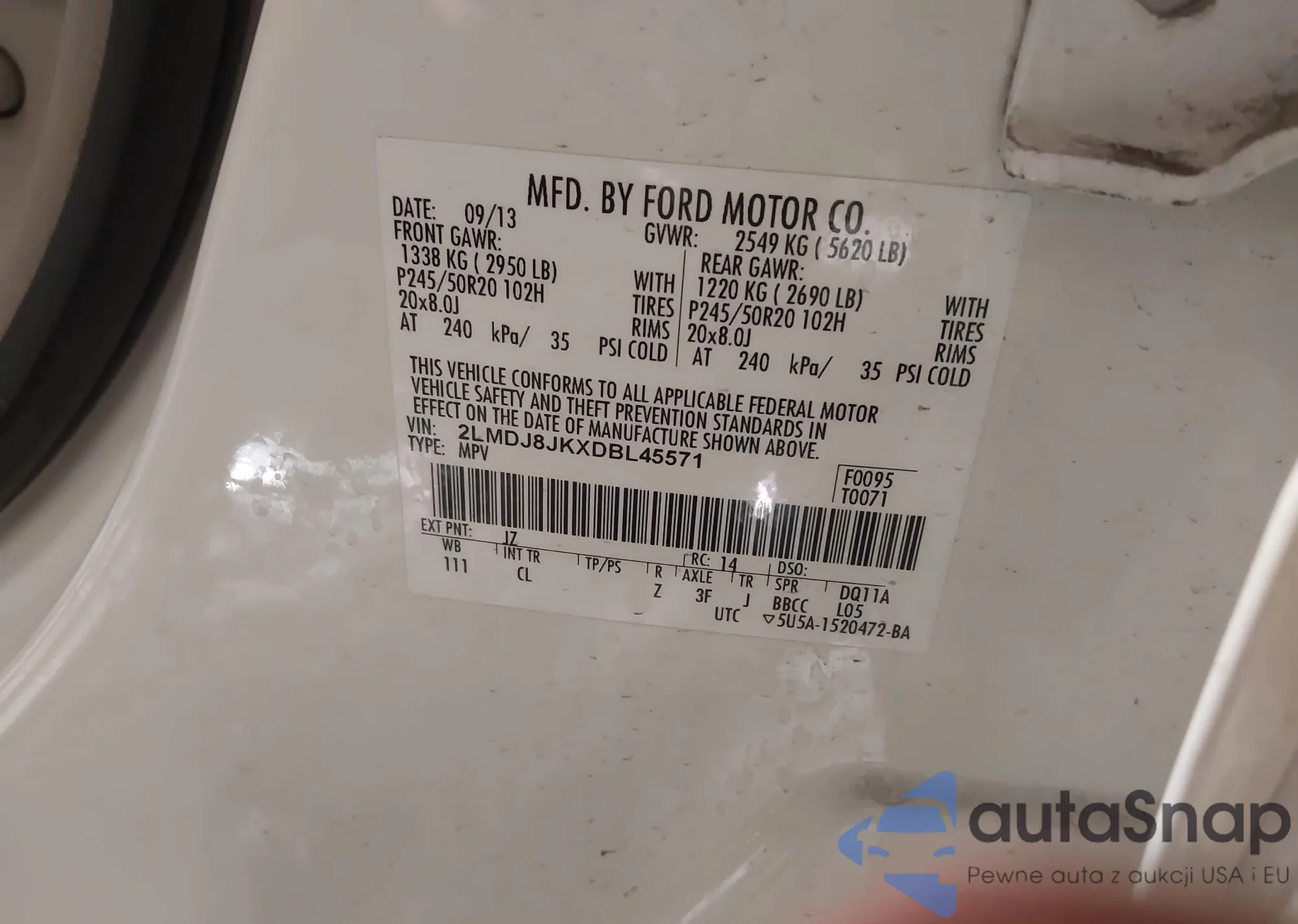 • VIN 2LMDJ8JKXDBL45571