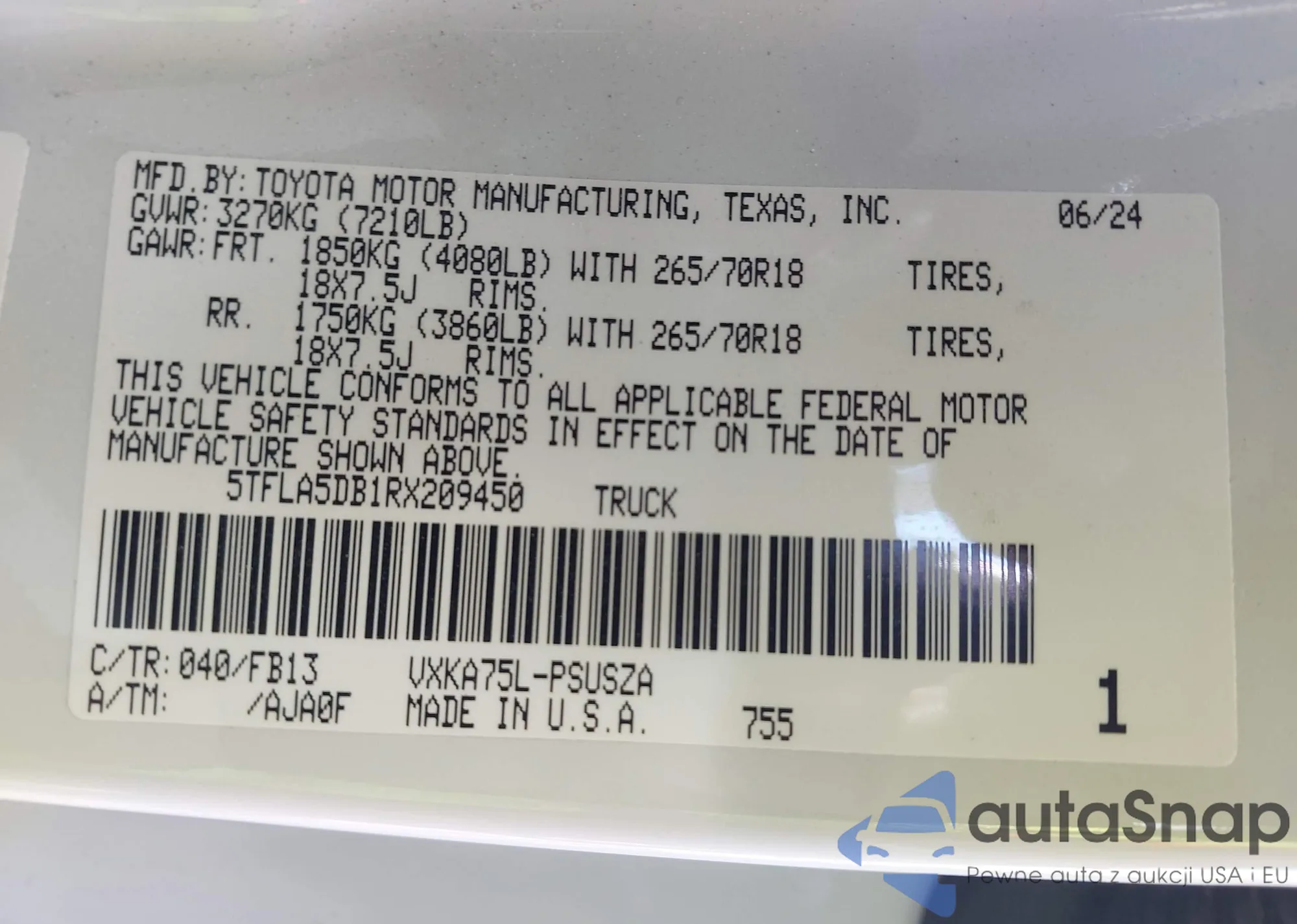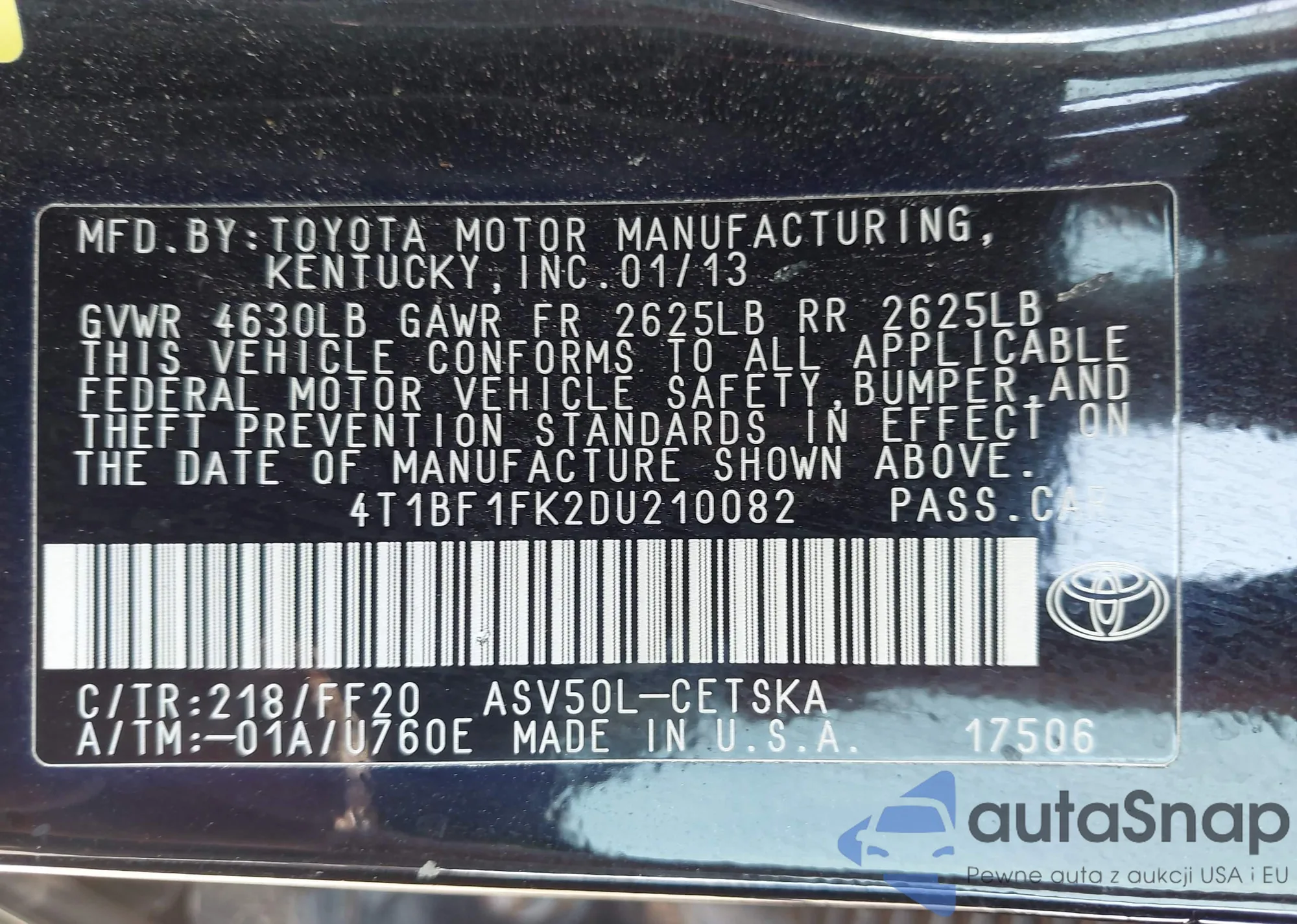 • VIN 4T1BF1FK2DU210082
