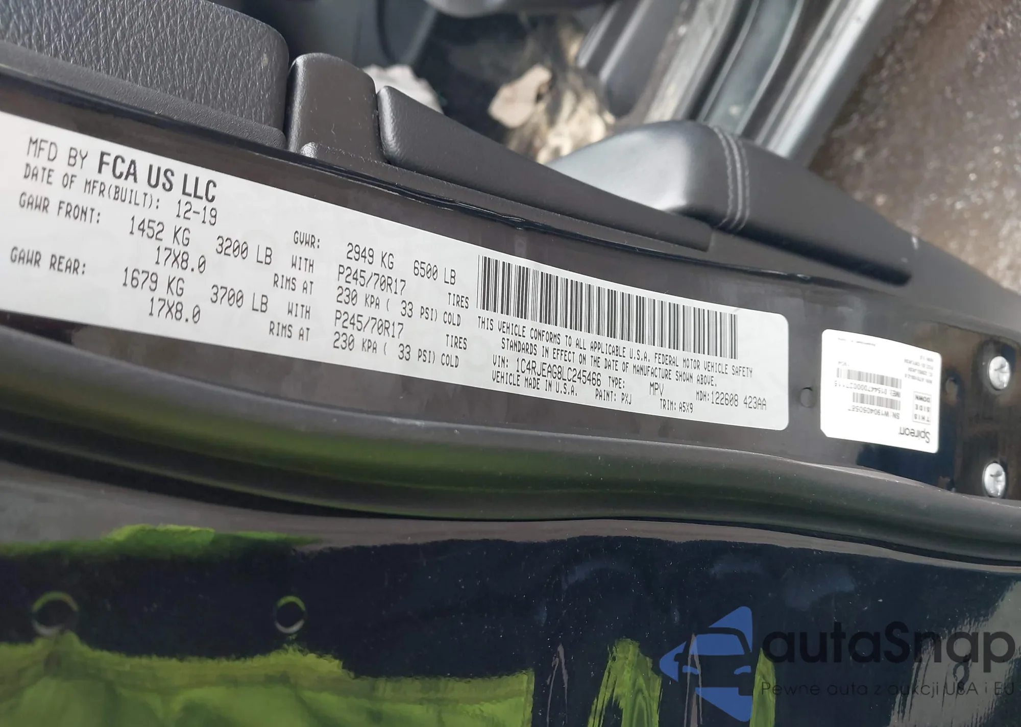 • VIN 1C4RJEAG8LC245466