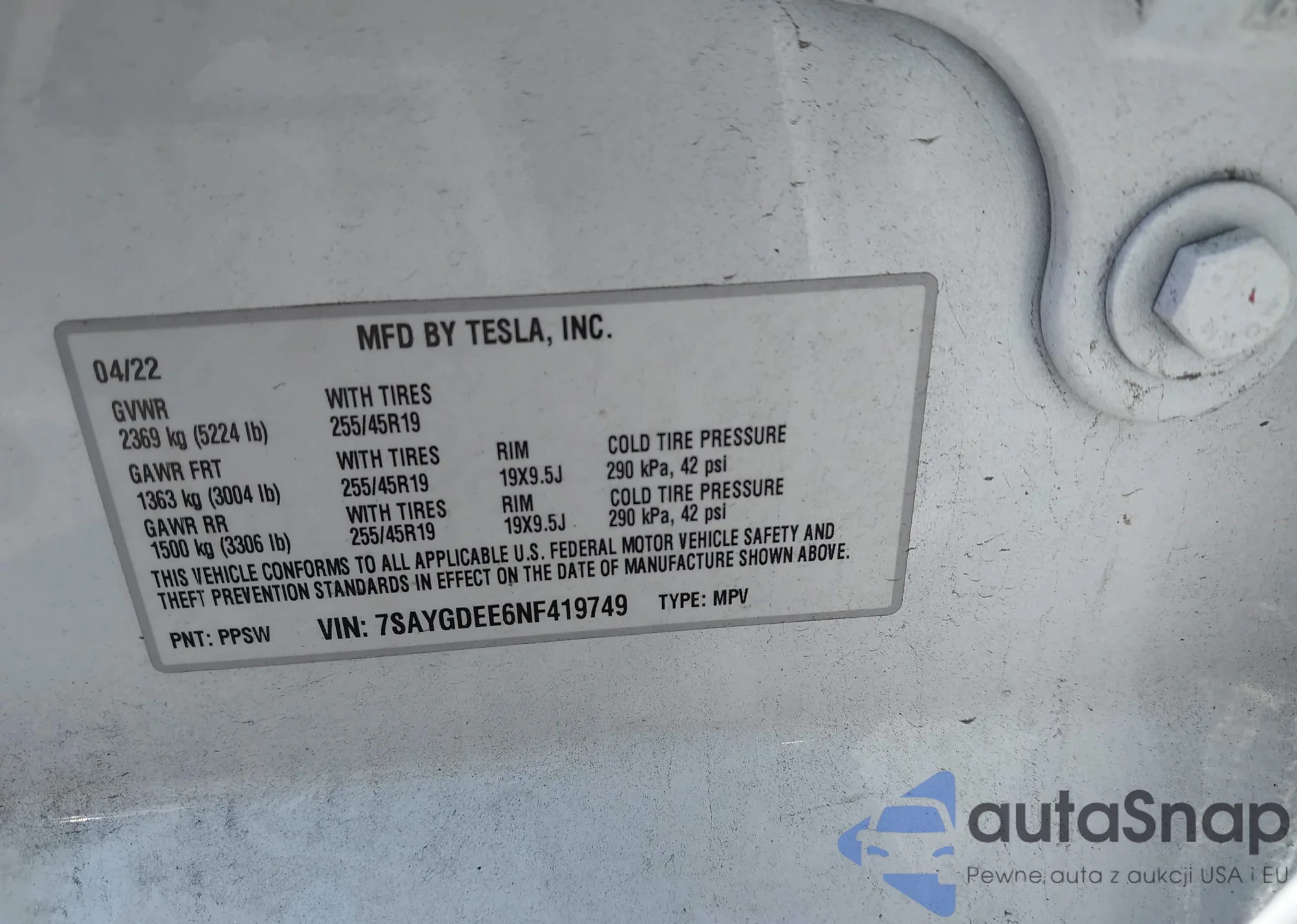 • VIN 7SAYGDEE6NF419749