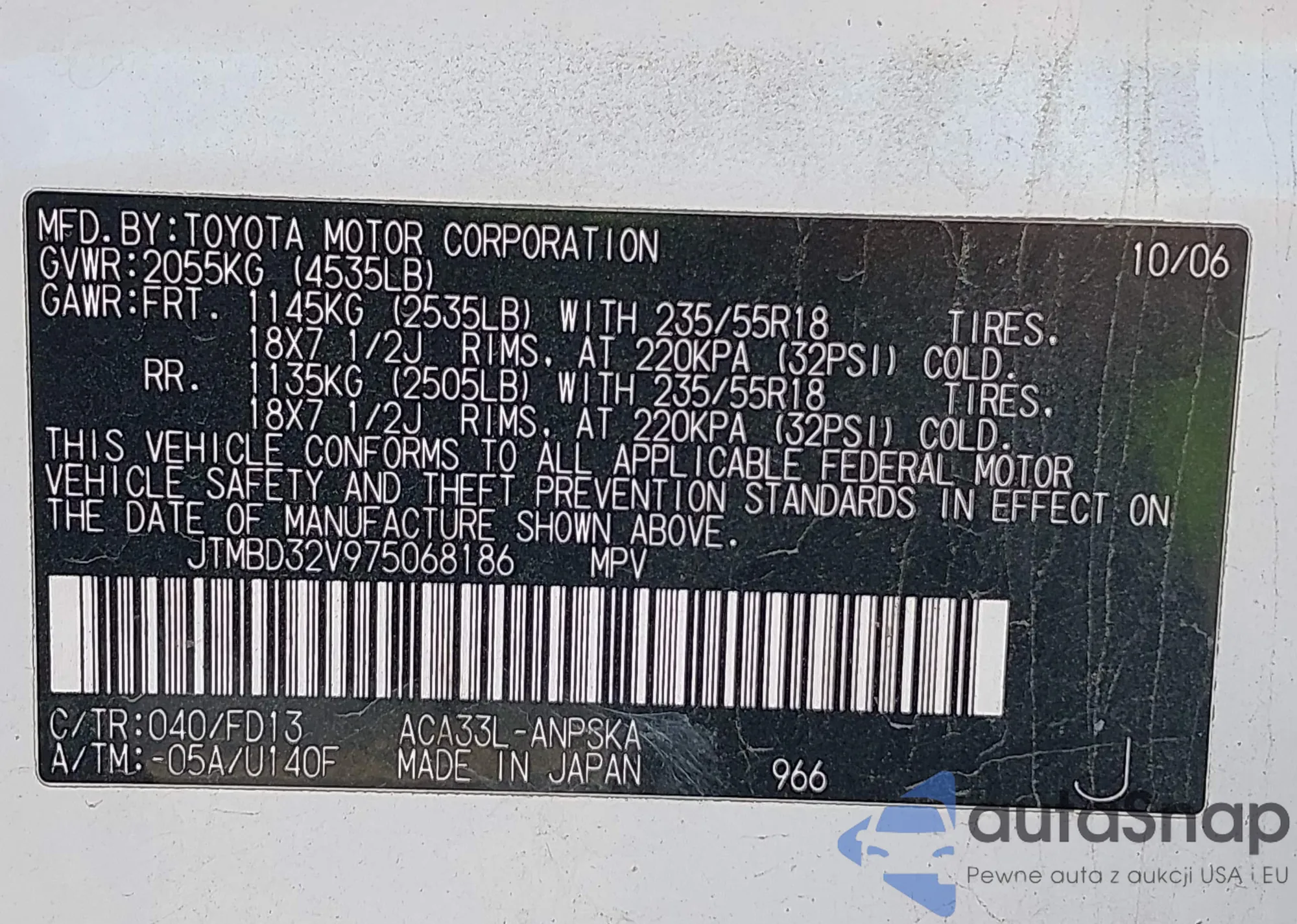 LOT: 43378403 VIN: JTMBD32V975068186