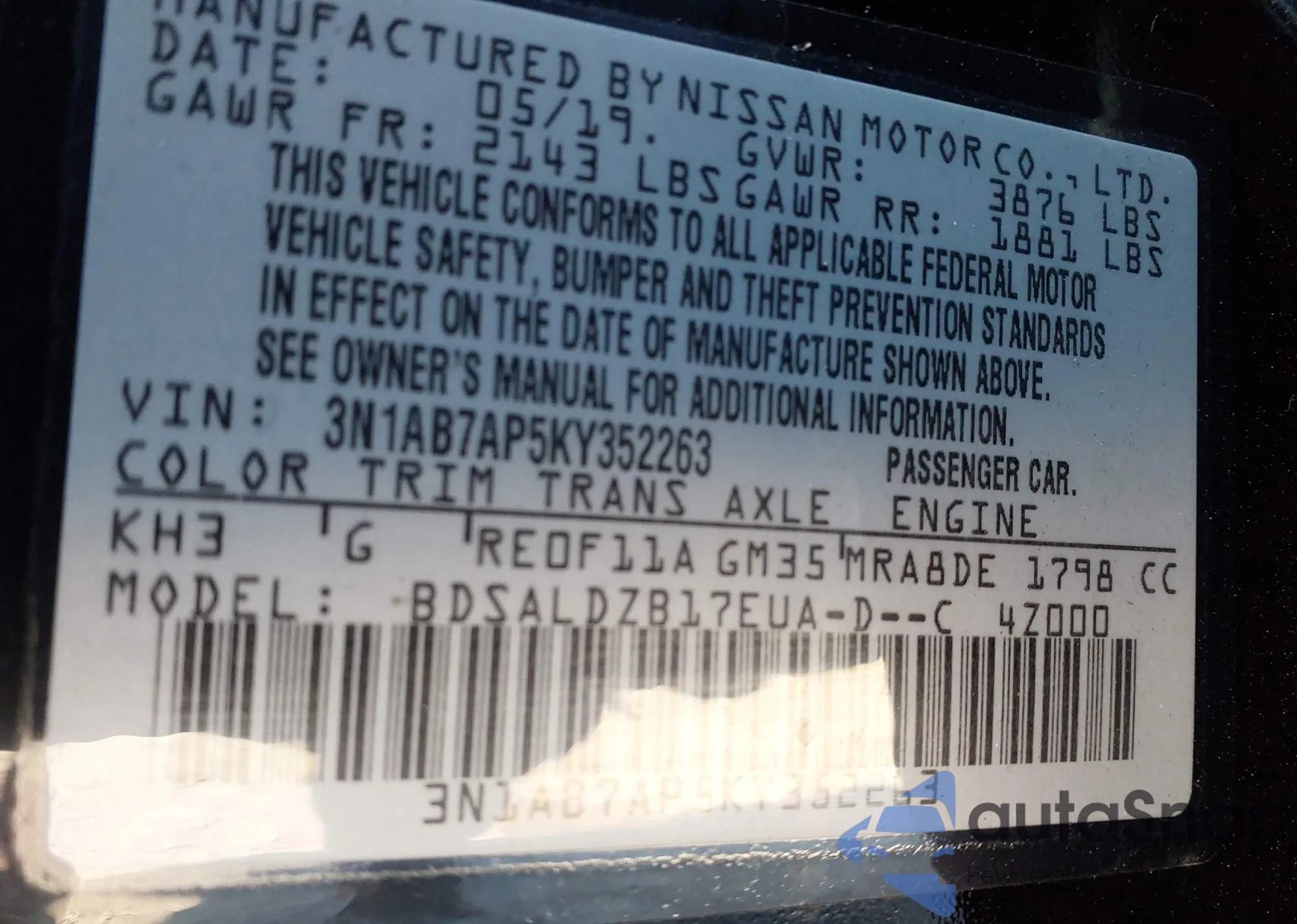 • VIN 3N1AB7AP5KY352263